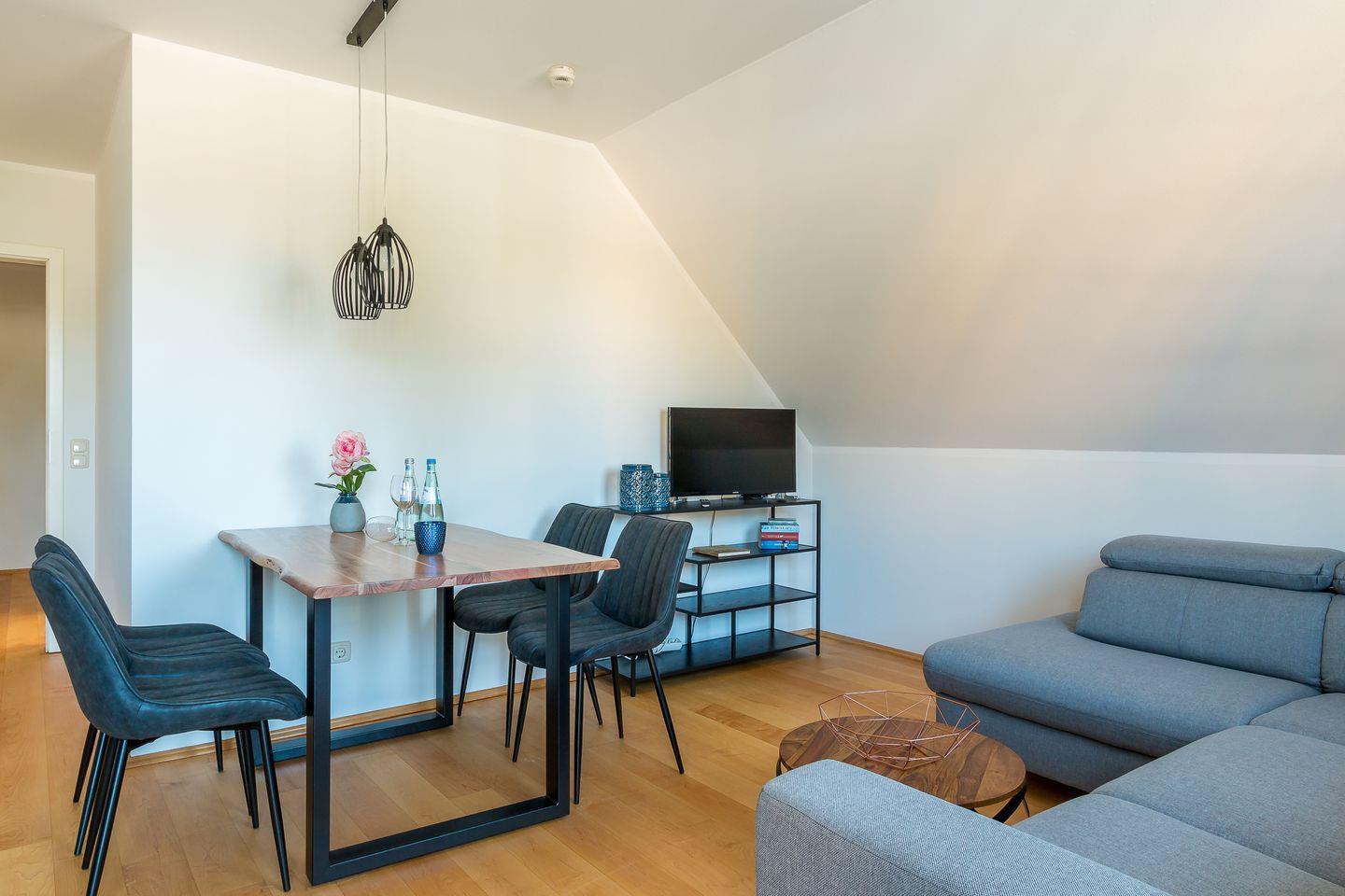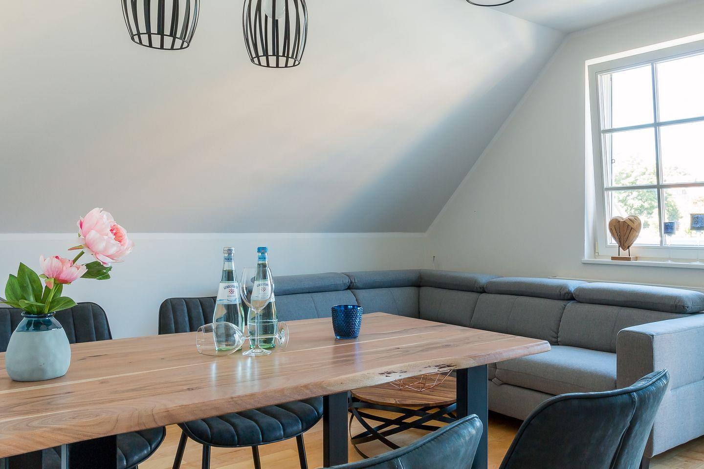 Die gemütliche Obergeschosswohnung auf der Sonnenseite verfügt über einen Wohnraum mit integrierter Küchenzeile, ein Schlafzimmer mit Doppelbett sowie ein Bad mit Dusche/WC und Westbalkon. Die Schlafcouch bietet eine zusätzliche Aufbettungsmöglichkeit für zwei Personen. Du liebst es frühstücken zu gehen? Dann brauchst du nur die Treppe runter und ins Café Pieni zu kommen. Das niedliche Café befindet sich im selben Haus.