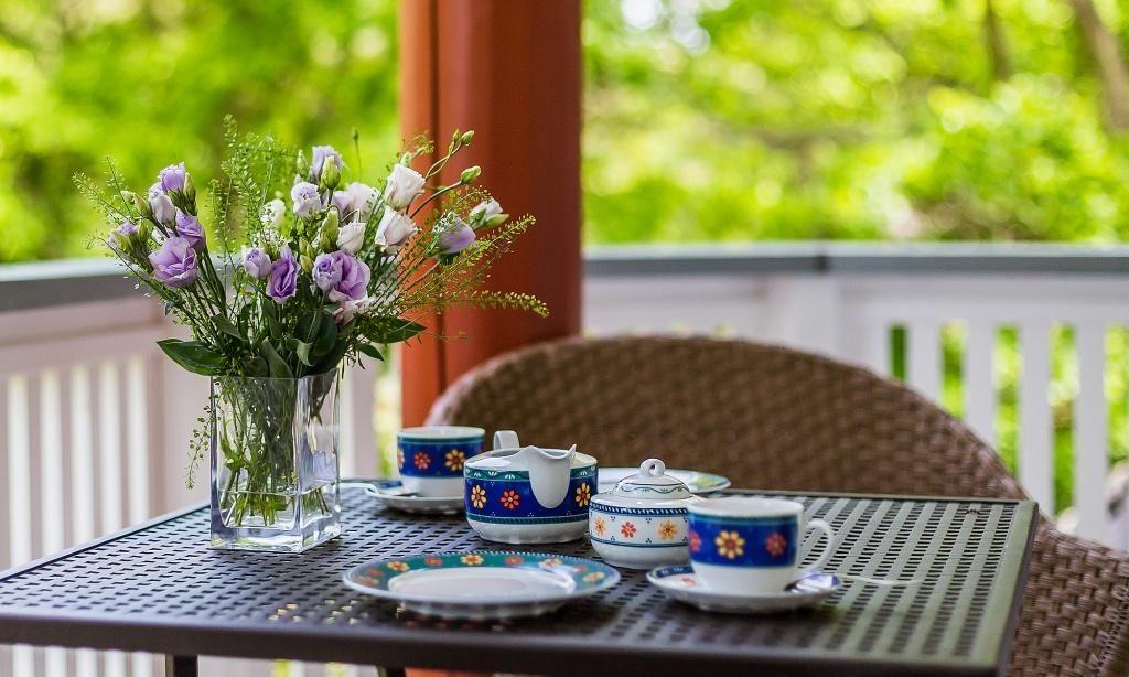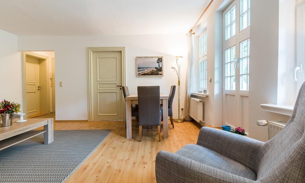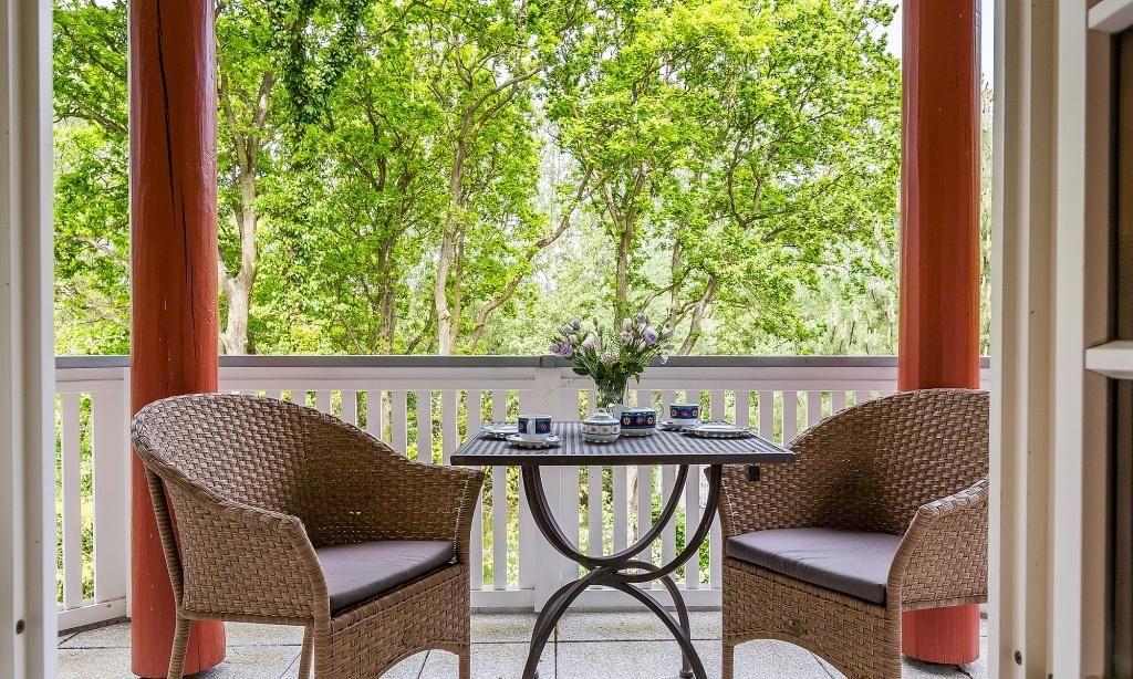 Die Ferienwohnung Villa Sonnenfrieden 01 in Ahrenshoop bietet strandnahe Lage, Balkon und einen parkähnlichen Garten für erholsame Stunden.