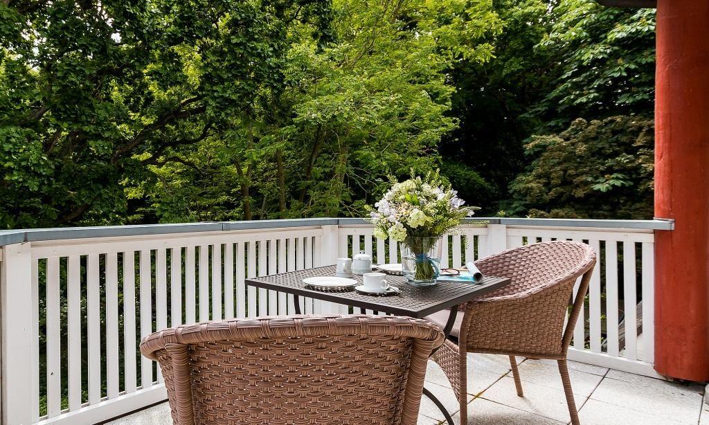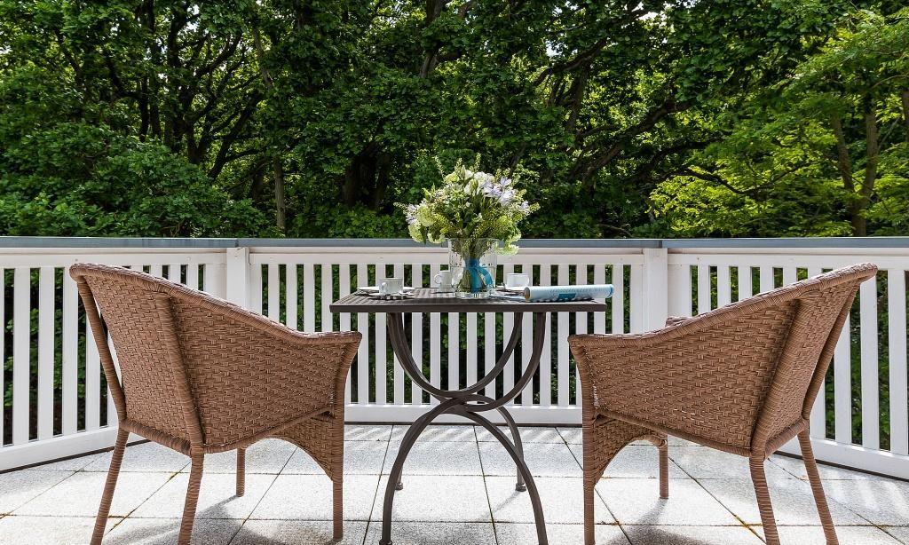 Der Balkon, der teilweise überdacht ist, bietet dir einen einzigartigen Blick auf das Ahrenshooper Holz und rundet den Wohnkomfort perfekt ab.