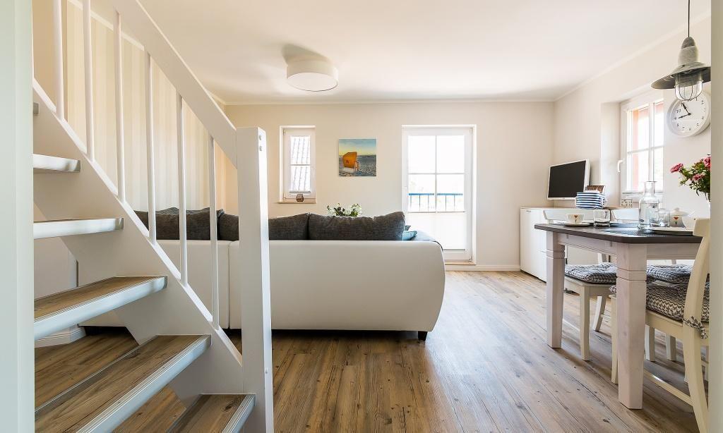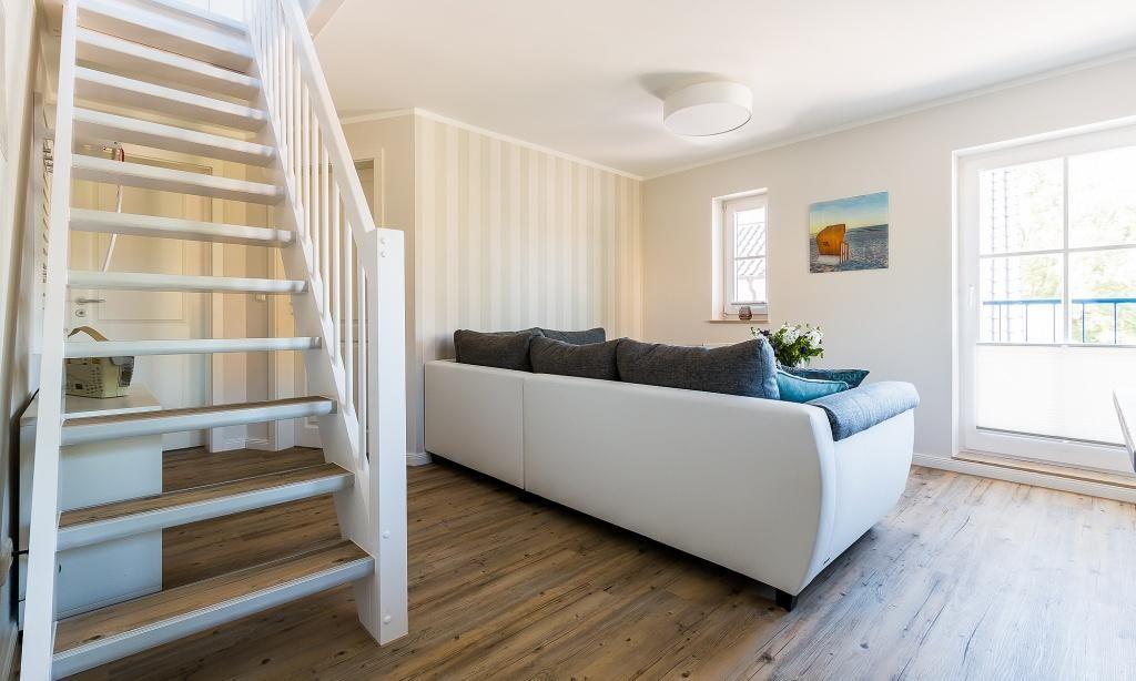 Gemütliche Maisonette-Ferienwohnung in Ahrenshoop, nur 400 m vom Strand entfernt, mit Strandkorb und moderner Ausstattung.