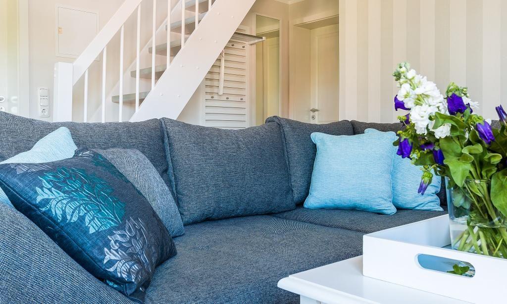 In der Maisonette-Wohnung erwartet dich ein gemütlicher Wohnbereich mit TV- und Essbereich. Die offene Küche ist modern und funktional ausgestattet. Ein Schlafzimmer mit einem Doppelbett und ein ansprechendes Bad mit Dusche/WC befinden sich ebenfalls im ersten Obergeschoss. Vom Wohnbereich gelangst du über eine Treppe ins Dachgeschoss. Hier liegt das zweite Schlafzimmer, welches ebenfalls mit einem Doppelbett und einem zweiten TV-Gerät ausgestattet ist. Die gesamte Wohnung ist liebevoll und harmonischen Farben eingerichtet. Der Seaside-Stil passt perfekt zur strandnahen Lage. Das ist Urlaubs-Feeling pur.
