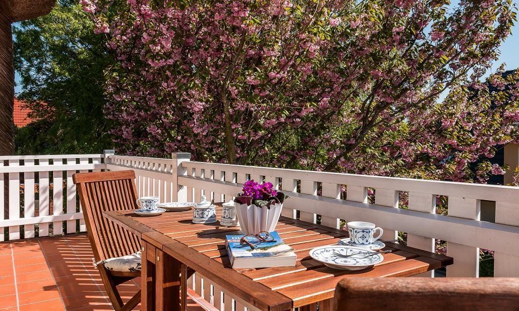 Gemütliche Ferienwohnung in Ahrenshoop mit Boddenblick, Balkon und Kachelofen für bis zu 4 Gäste.
