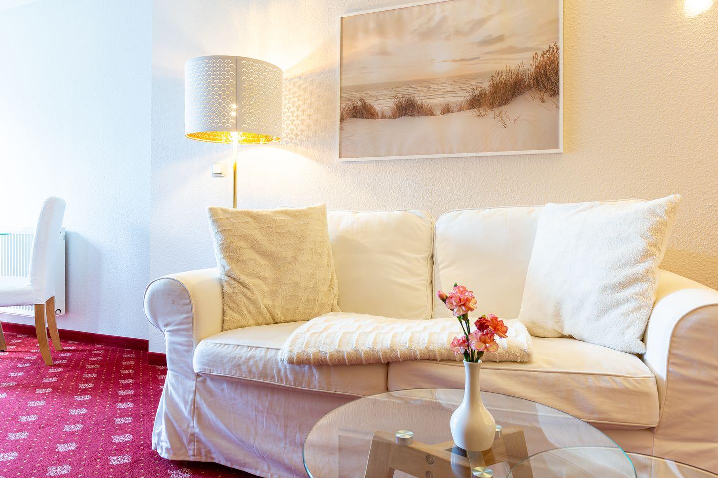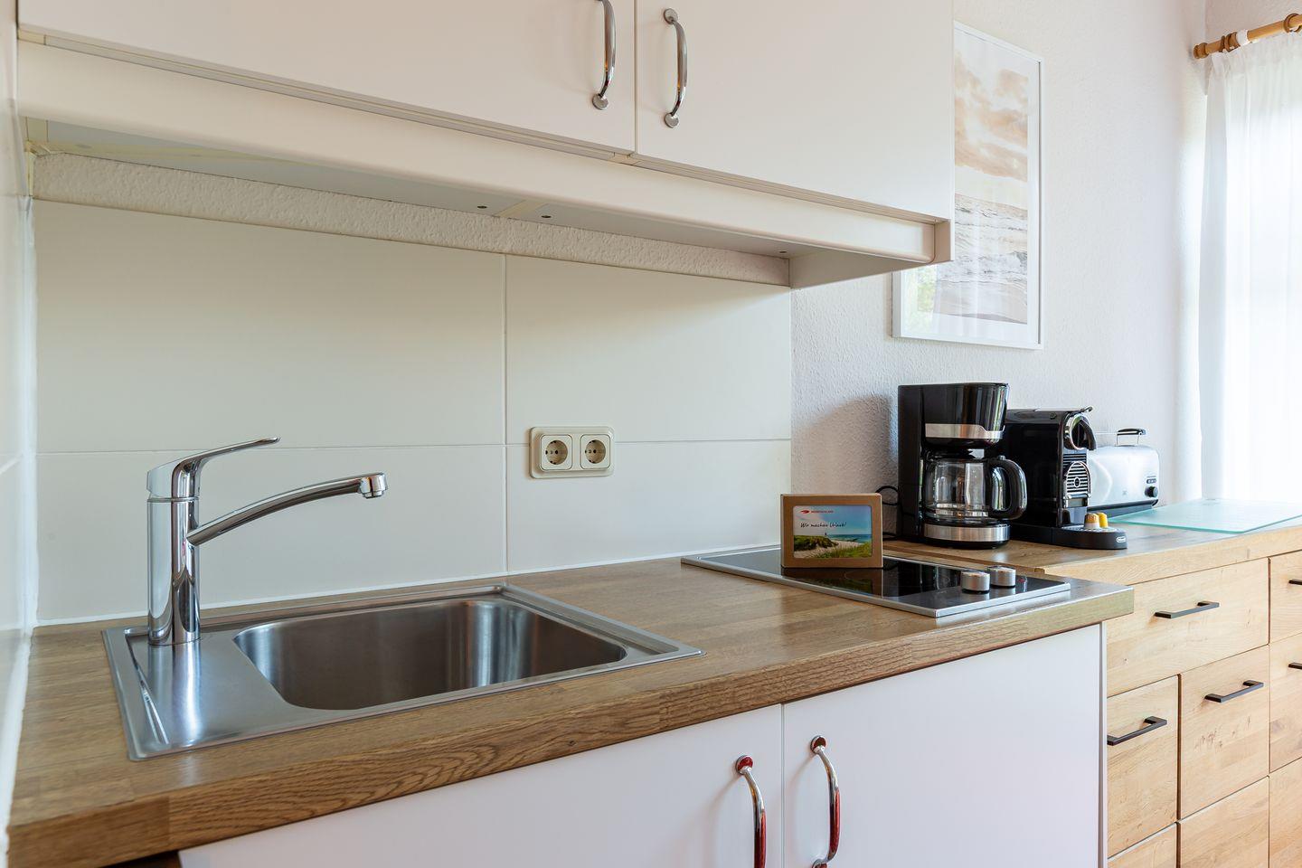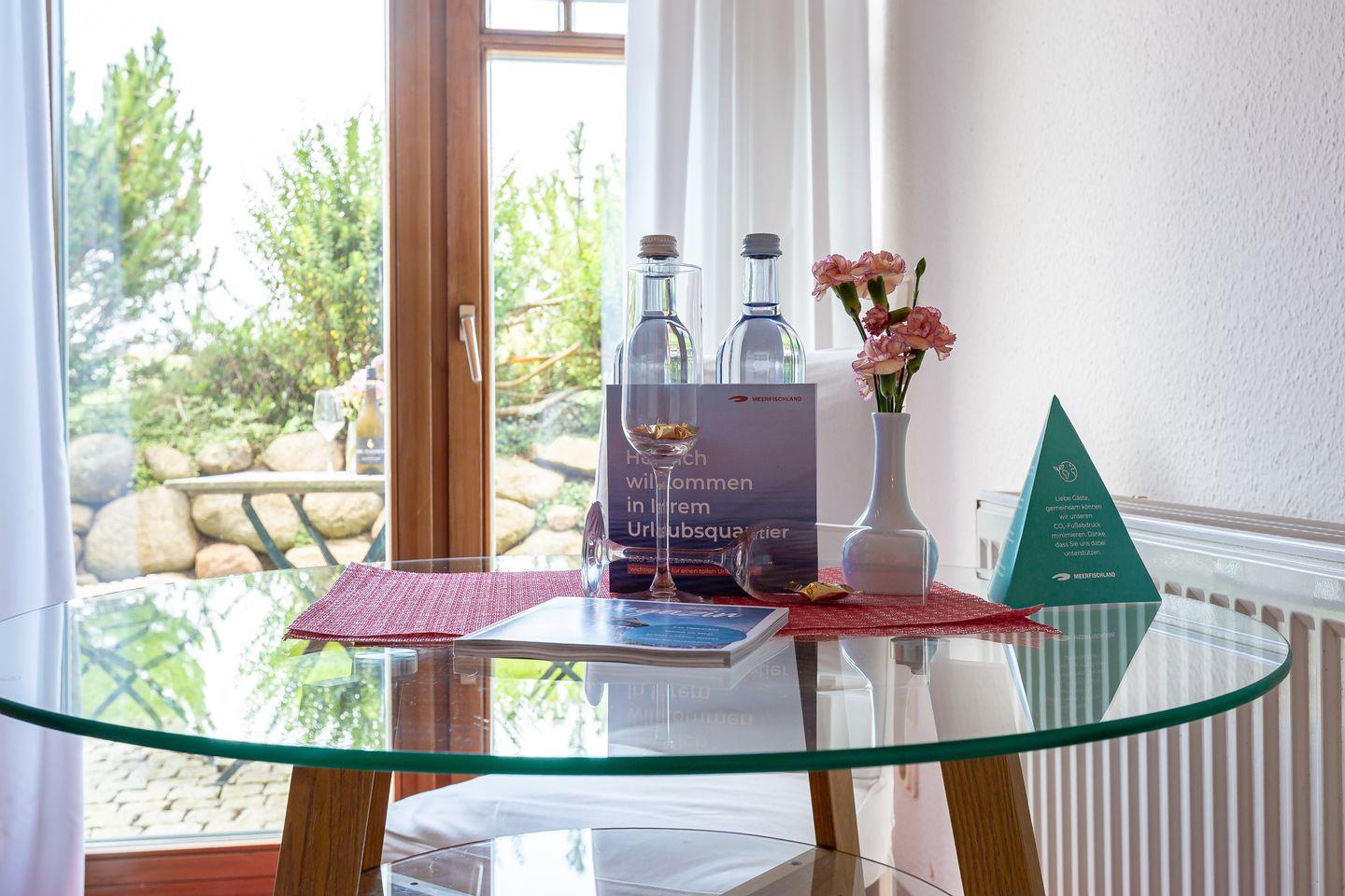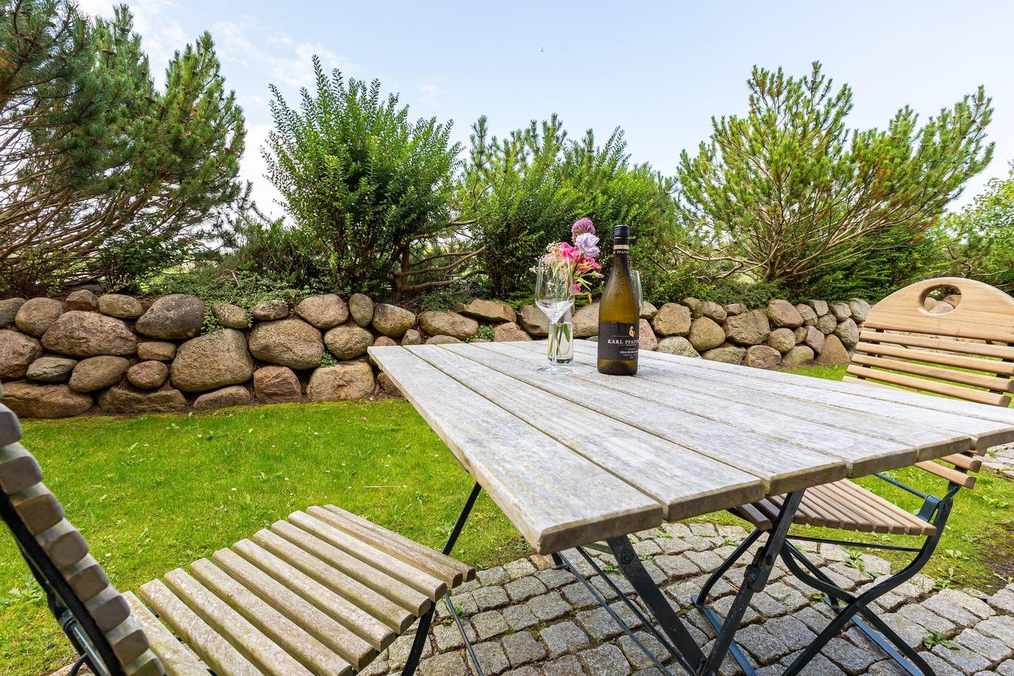 Eine kleine Sonnenterrasse mit West-Ausrichtung gehört ebenfalls zur Ausstattung und begeistert mit einem tollen Blick auf die Dünen. Hier kannst du bei Meeresrauschen und traumhaften Sonnenuntergängen deinen Urlaub genießen. Ein PKW-Stellplatz gehört zur Ferienwohnung dazu.