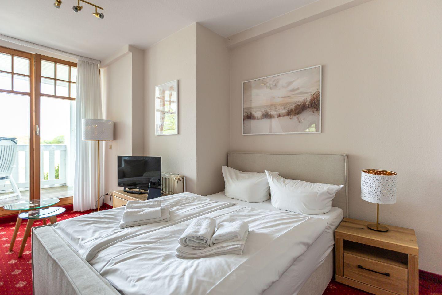 Ein kleiner Balkon mit West-Ausrichtung gehört ebenfalls zur Ausstattung und begeistert mit einem tollen Blick auf die Dünen. Hier kannst du bei Meeresrauschen und traumhaften Sonnenuntergängen deinen Urlaub genießen. Ein PKW-Stellplatz gehört zur Ferienwohnung dazu.