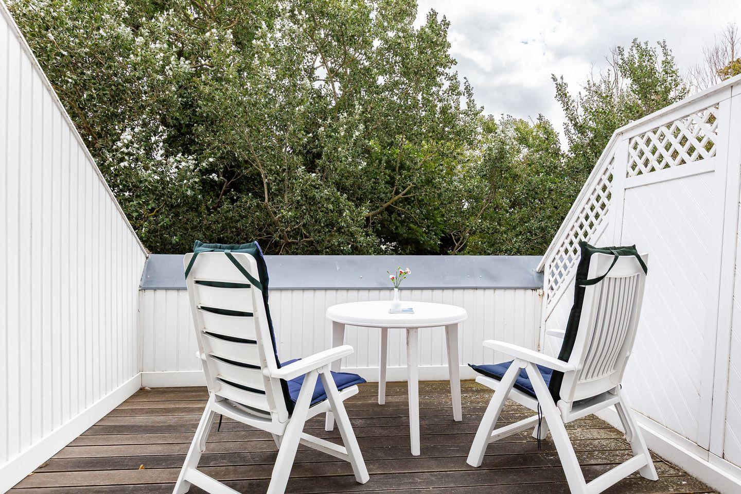 Ein schöner Balkon mit Ost-Ausrichtung sowie ein Balkon mit Nord-Ost-Ausrichtung gehört ebenfalls zur Ausstattung und begeistert mit einem tollen Blick ins Grüne. Hier kannst du bei Meeresrauschen und traumhaften Sonnenuntergängen deinen Urlaub genießen. Ein PKW-Stellplatz gehört zur Ferienwohnung dazu.