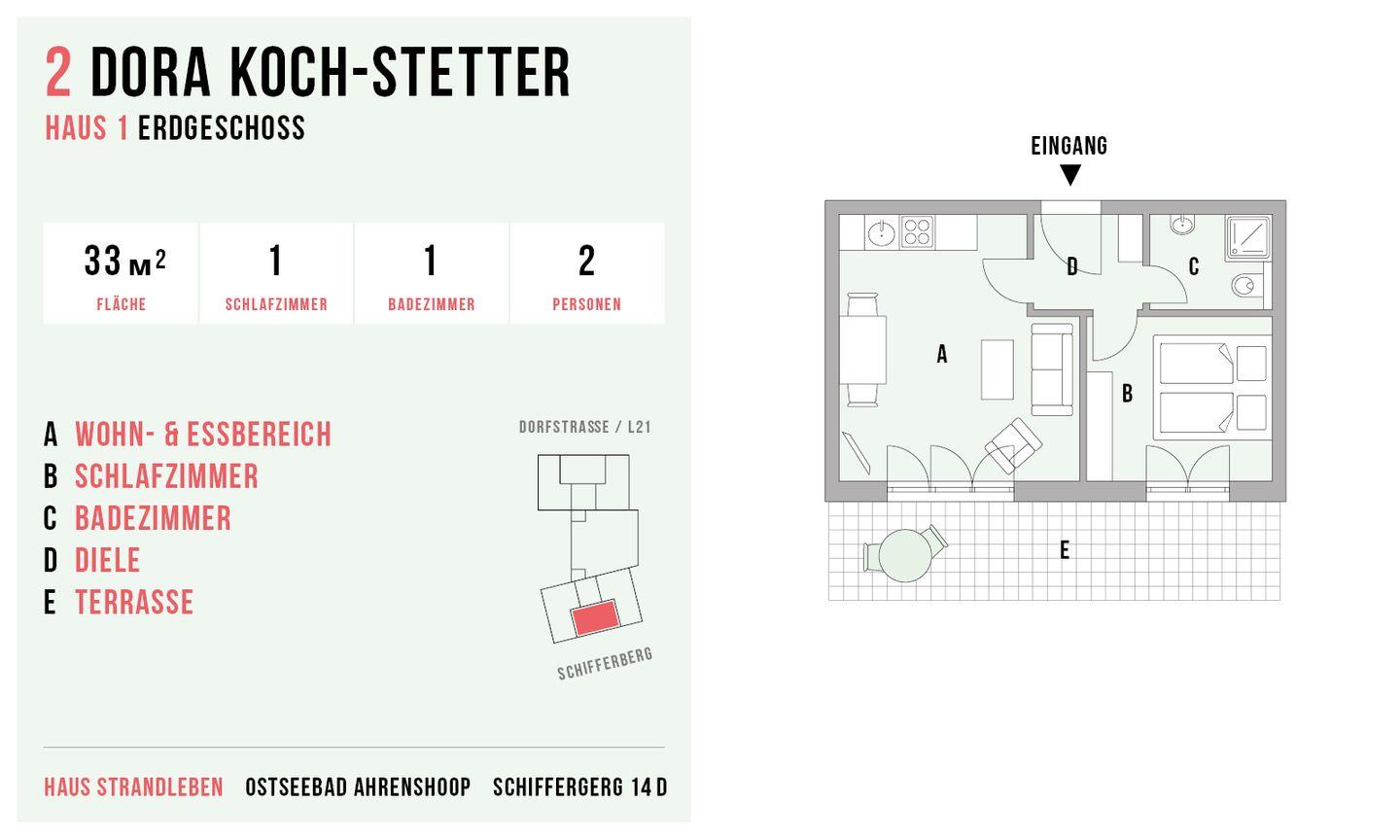 Nur 150 Meter vom feinen Ostseestrand entfernt und direkt an der L21 liegt die charmante Ferienanlage mit 13 Wohnungen. Perfekt für entspannte Tage am Meer. Der lebendige Ortskern mit Cafés, Restaurants und kleinen Galerien ist nur einen kurzen Spaziergang entfernt. Direkt am Deich beginnen idyllische Wege für ruhige Spaziergänge und Radtouren durch die weite Natur bis hin zum Weststrand und zur Boddenlandschaft.