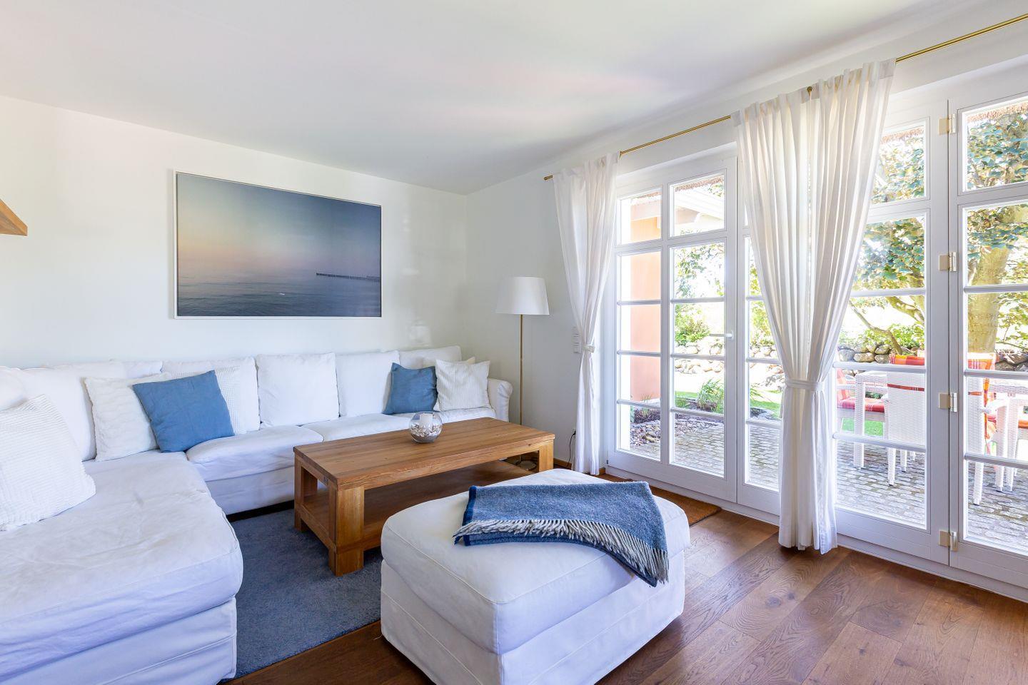 Eine Terrasse schließt sich direkt an den Wohnbereich an und liegt seeseitig in West-Ausrichtung. Hier, wo du das Meer rauschen und die Möwen schreien hörst, stellt sich das Urlaubs-Feeling sofort ein.