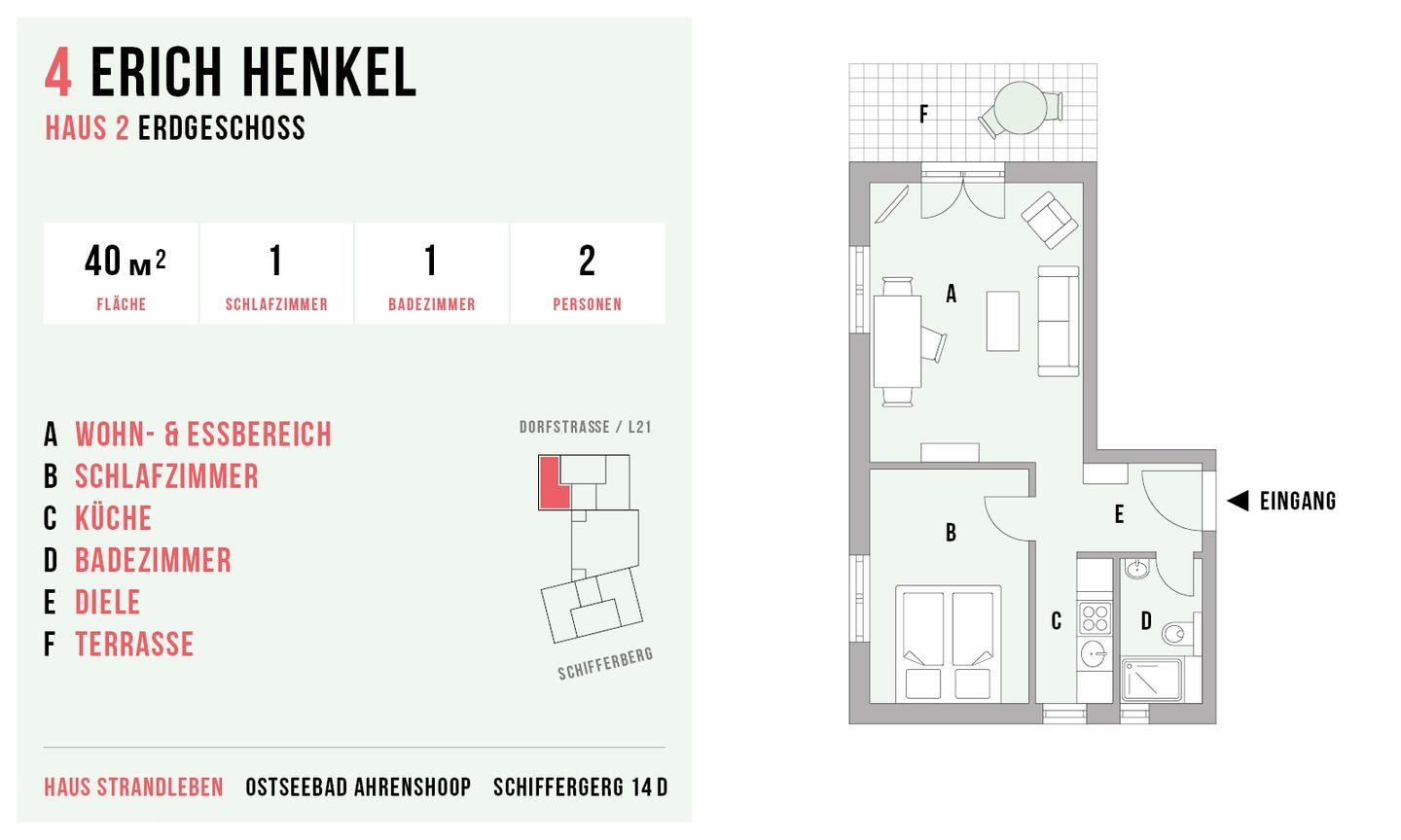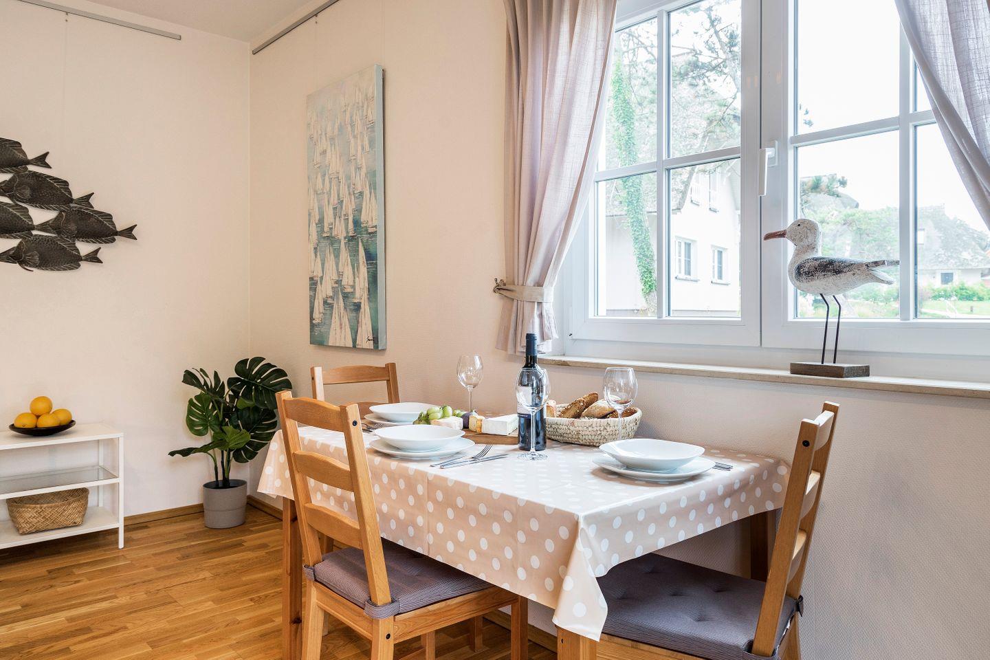Die Hausanlage mit 13 Ferienwohnungen liegt nur 150 Meter vom weißen Ostseestrand entfernt und befindet sich direkt an der Bäderstraße L21. Neben der strandnahen Lage ist auch der Ortskern mit Bäckereien und einer Vielzahl von Restaurants, Cafés und Kunstgalerien nur ca. einen Kilometer entfernt. Der angrenzende Deich eignet sich perfekt für Wanderungen oder Radtouren in den Nationalpark, zum Weststrand und entlang der weiten Boddenlandschaft.