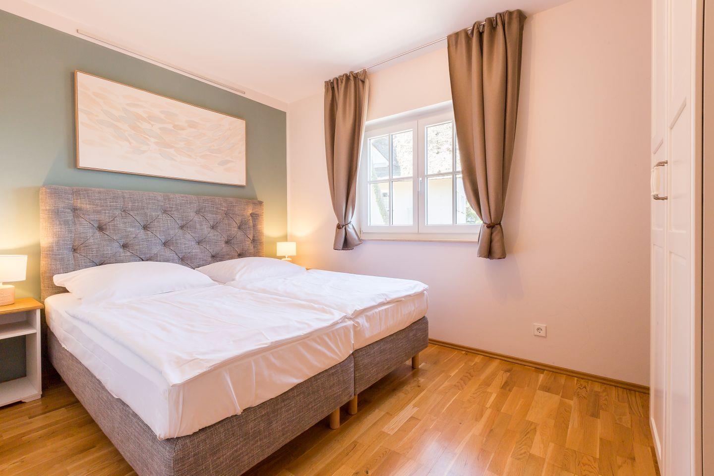 Im Erdgeschoss befinden sich der Wohnbereich mit einer gemütlichen Sitz- und Essecke sowie einer separaten Küchenzeile, ein Schlafzimmer mit Doppelbett (180x200 cm), ein Bad mit Dusche/WC und eine Terrasse mit Süd-West-Ausrichtung. Die Couch im Wohnzimmer ist ausziehbar und bietet Platz für eine zusätzliche Aufbettung. Im Preis inklusive ist die Nutzung des Wellnessbereiches im Untergeschoss. Hier befinden sich ein Schwimmbad, eine Saunalandschaft, ein Ruheraum sowie Kneippfußbäder und Massageduschen.