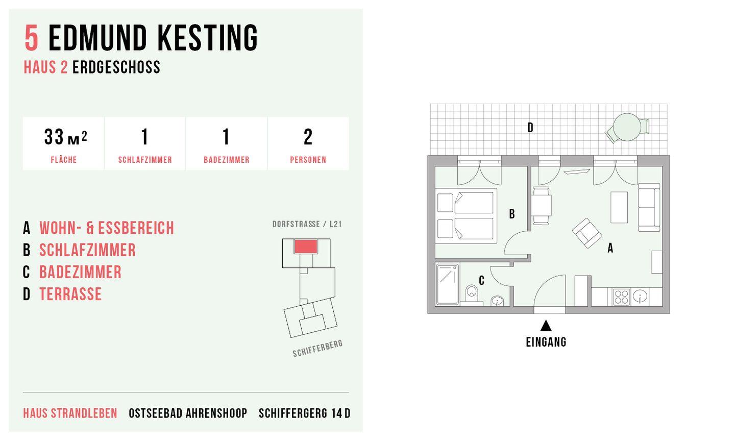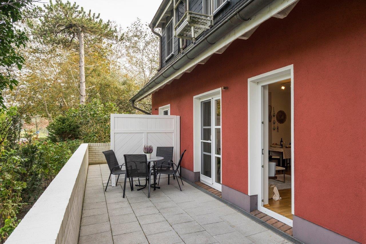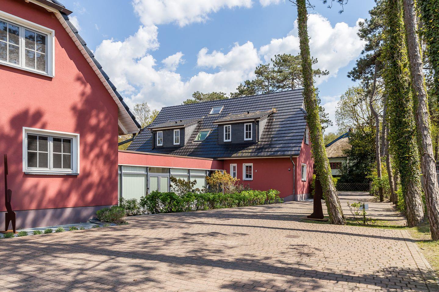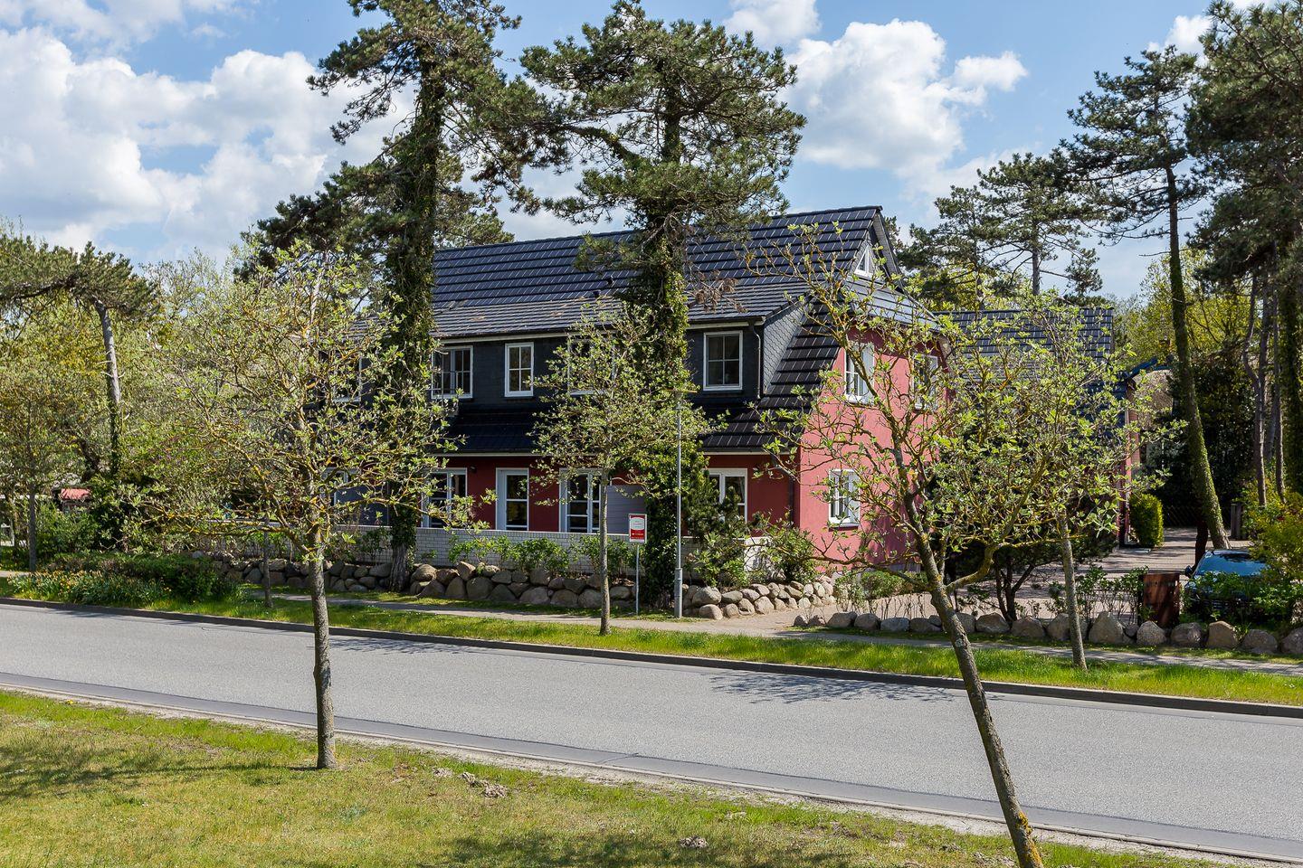 Die Hausanlage mit 13 Ferienwohnungen liegt nur 150 Meter vom weißen Ostseestrand entfernt und befindet sich direkt an der Bäderstraße L21. Neben der strandnahen Lage ist auch der Ortskern mit Bäckereien und einer Vielzahl von Restaurants, Cafés und Kunstgalerien nur ca. einen Kilometer entfernt. Der angrenzende Deich eignet sich perfekt für Wanderungen oder Radtouren in den Nationalpark, zum Weststrand und entlang der weiten Boddenlandschaft.