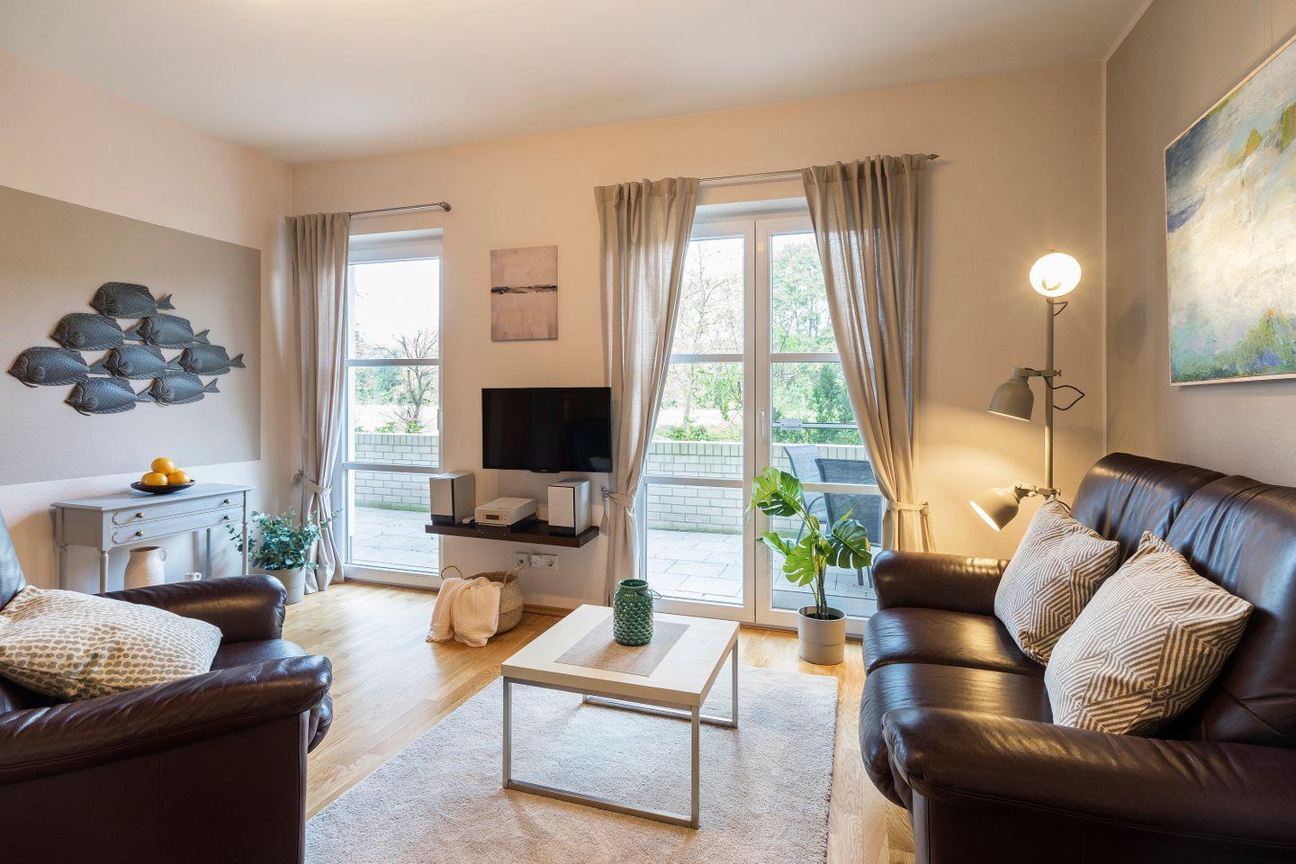 Gemütliche Ferienwohnung in Ahrenshoop, nur 150 m vom Ostseestrand mit Schwimmbad und Sauna.