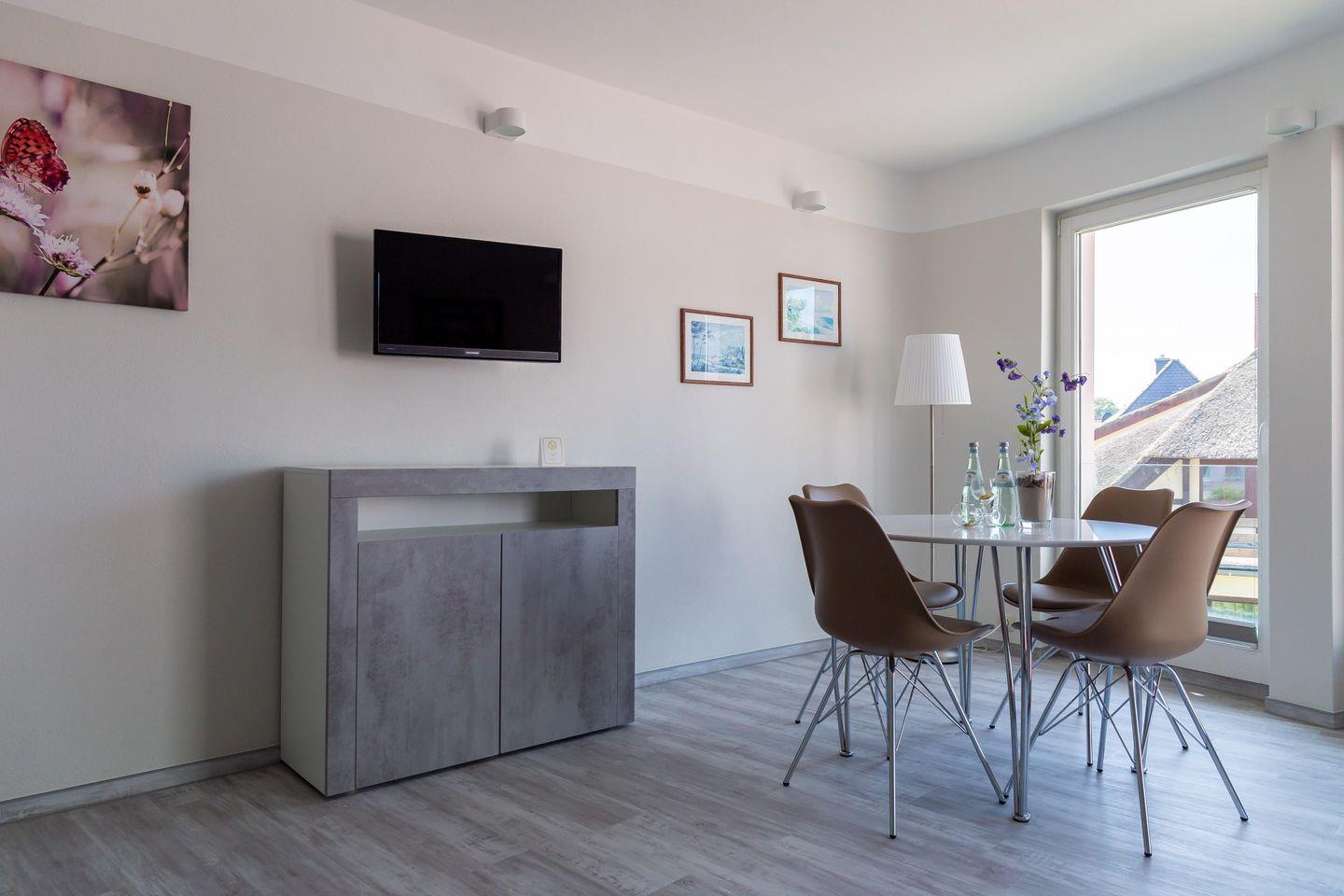 In den Häusern Muschel und Strandläufer gibt es noch 8 weitere Ferienwohnungen, die gern für Familien und Gruppen zusammen gebucht werden können. Des Weiteren befindet sich im Haupthaus ein Restaurant.