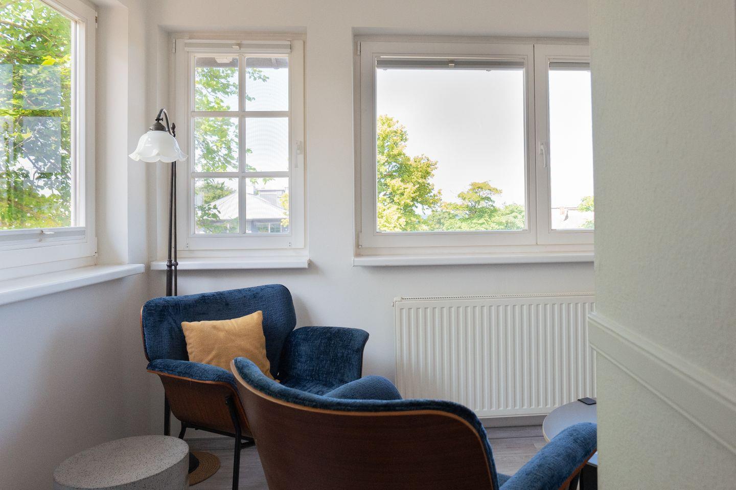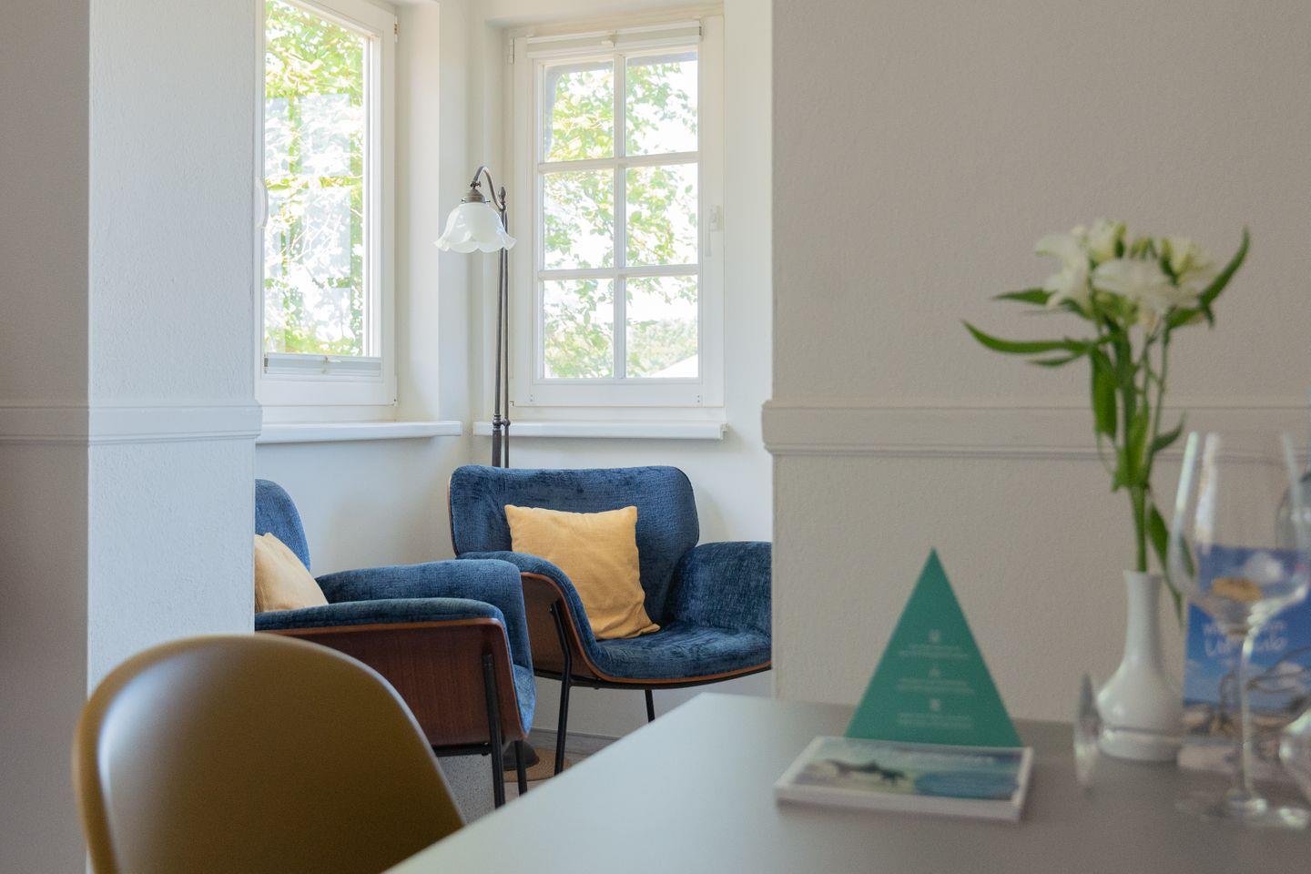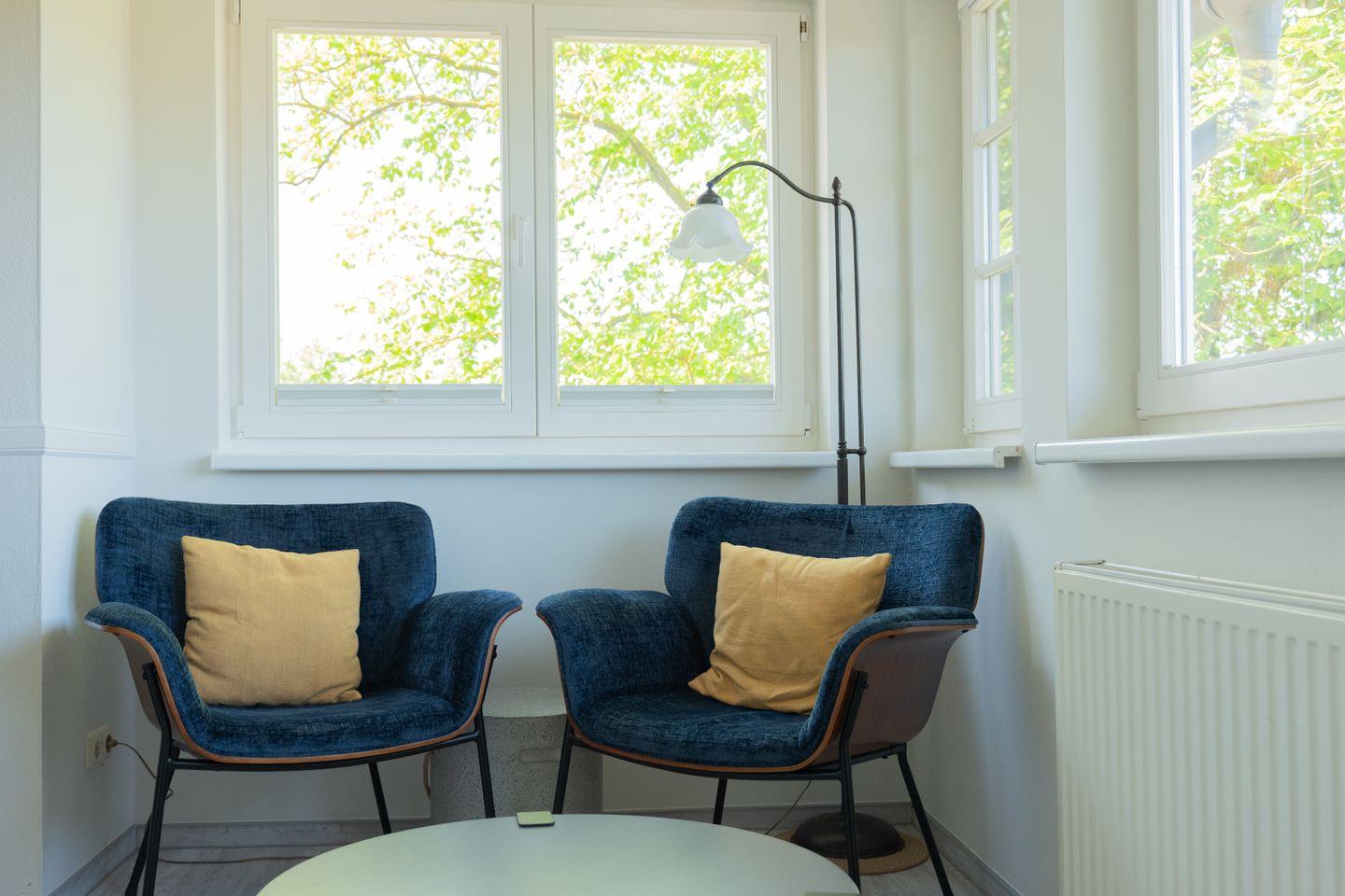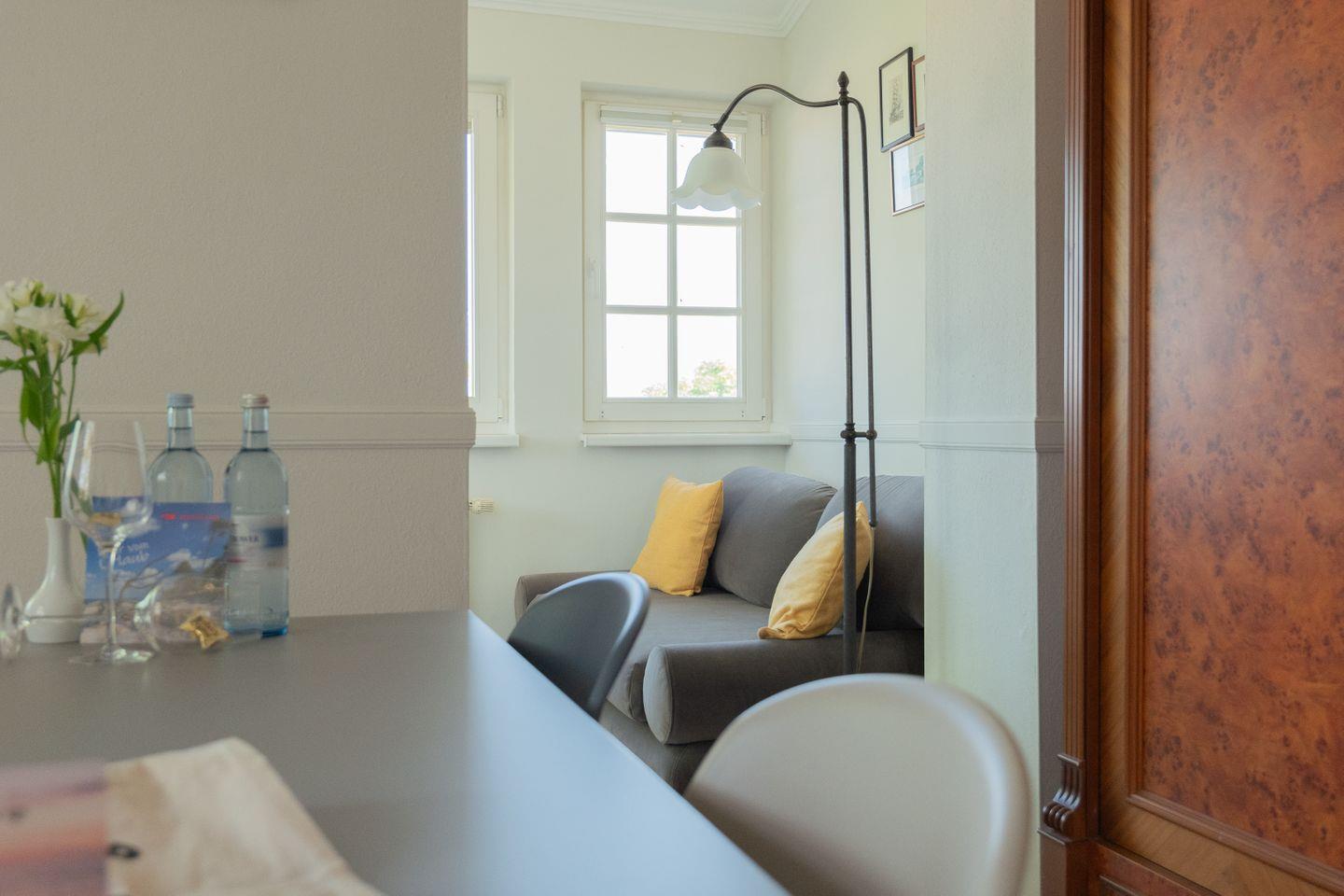 Die Unterkunft „Strandläufer 3“ befindet sich im zweiten Obergeschoss des Haupthauses Strandläufer und ist über den Seiteneingang zu erreichen. Großzügige Räume, helle Farben und ein Mix aus modernem Mobiliar und Möbeln im Stil der Gründerzeit machen diese Ferienwohnung zu einem besonderen Urlaubsdomizil. Mittelpunkt der Wohnung ist der offen gestalte Wohnbereich mit vollausgestatteter Küchenzeile und Esstisch mit Ausblick auf die Ostsee. Ob mit Familie oder Freunden, hier gibt es genügend Platz zum gemeinsamen Kochen und Klönen. Ebenso großzügig wie der Wohnraum sind auch die beiden Schlafzimmer der Ferienwohnung. Ausgestattet mit je einem Doppelbett, Kleiderschrank, TV und Sitzgelegenheiten, findest du hier einen erholsamen Schlaf. Besonderes Highlight: Auch eins der Schlafzimmer zeigt in Richtung Ostsee. Hier genießt du einen einmaligen Blick auf das Meer mit seinen spektakulären Sonnenuntergängen. Das zweite Schlafzimmer verfügt über einen Balkon mit herrlichem Blick auf den Bodden. Für weiteren Wohnkomfort sorgen die beiden Badezimmer mit Dusche und WC.