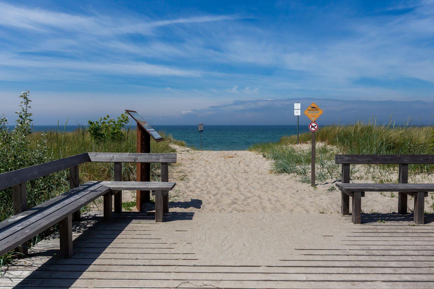 Moderne Ferienwohnung Strandläufer 3 in Ahrenshoop mit Meerblick, Balkon und Nähe zum Strand für einen erholsamen Urlaub.