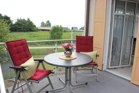 Gemütliche Ferienwohnung mit Terrasse und Balkon direkt am Ahrenshooper Hafen mit Blick auf den Bodden.