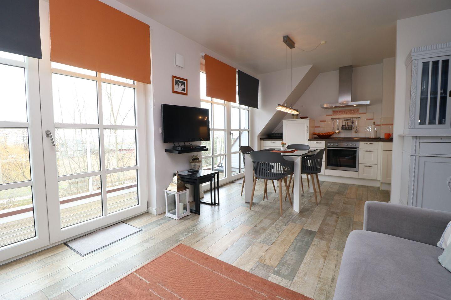 Gemütliche Maisonette-Ferienwohnung mit Boddenblick und zwei Balkonen im Ostseebad Ahrenshoop.
