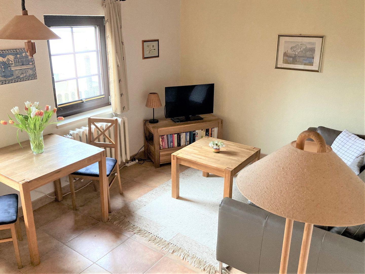 Das Appartement „Tine“ ist eine gemütliche Erdgeschoss-Ferienwohnung für 2 Personen auf ca. 35 m². Ein liebevoll eingerichteter Wohnbereich mit Küchenzeile, ein Schlafzimmer mit Doppelbett (140x200) sowie eine kleine Terrasse vor dem Haus sorgen für entspannte Urlaubstage. Smart-TV, Bluetooth-Soundbar und WLAN bieten zusätzlichen Komfort. Ein PKW-Stellplatz befindet sich in der Nähe.