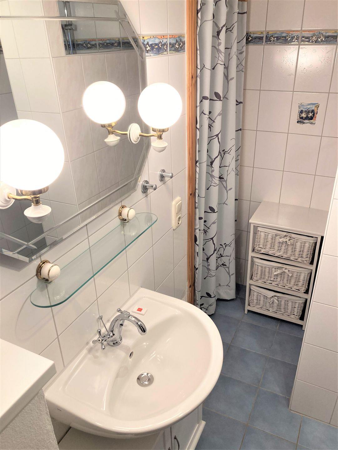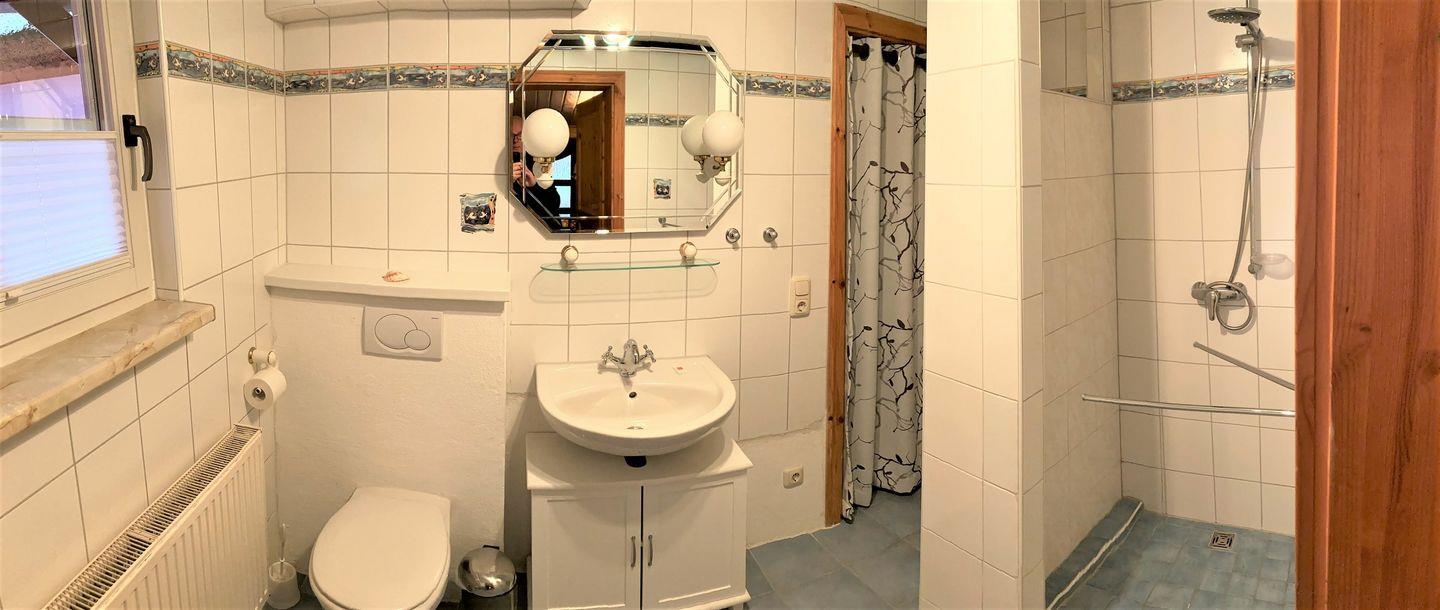 Das Badezimmer ist mit Dusche und WC ausgestattet und rundet den Wohnkomfort der Ferienwohnung ab.