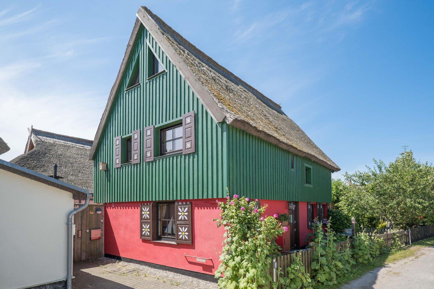 Charmante Doppelhaushälfte mit Reetdach nahe Bodden und Ostseeküste, ideal für entspannte Urlaubstage.