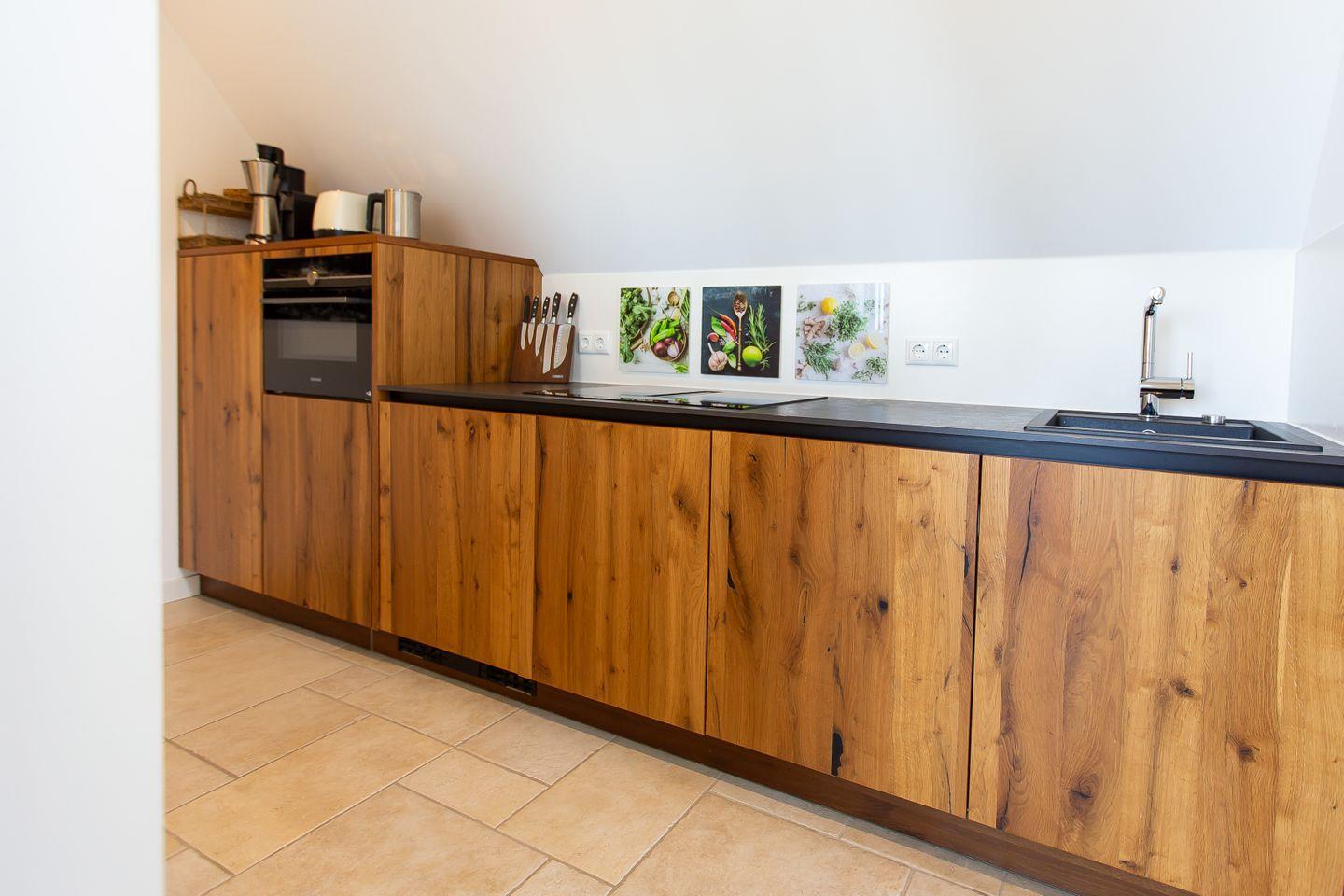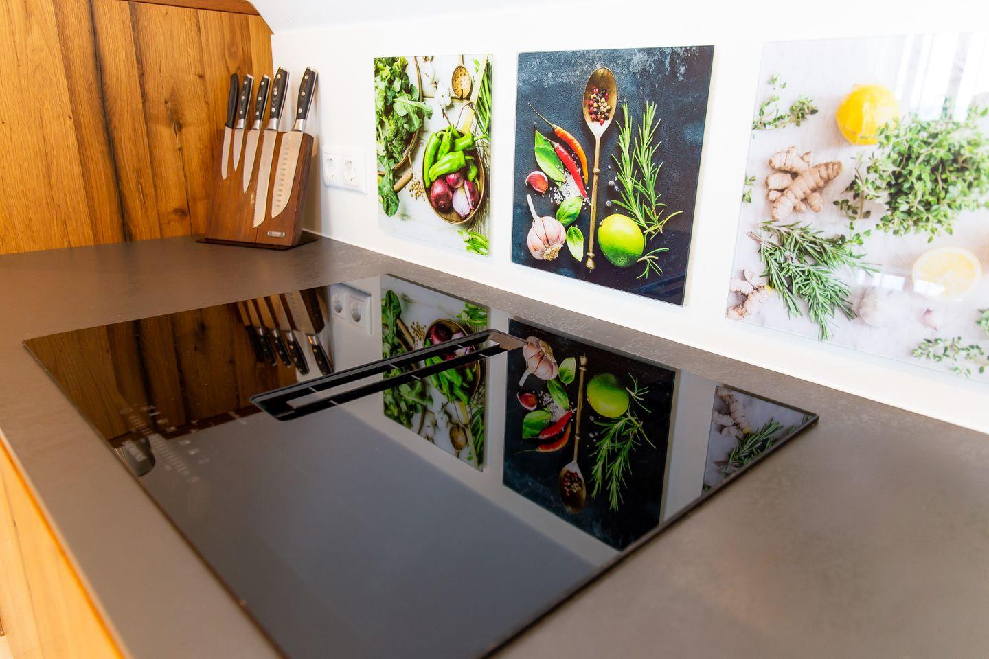 Das neu und aufwendig sanierte Haus Anna bietet den perfekten Rahmen für einen unvergesslichen Urlaub. Über eine Treppe gelangst du in den ersten Stock und somit in den Eingang der Wohnung. Das Herzstück ist zweifelsohne der offen gestaltete Wohn-, Ess- und Küchenbereich, in dem Stil und Gemütlichkeit aufeinandertreffen. In der voll ausgestatteten Küchenzeile befinden sich modernste Geräte, die das Kochen zum Vergnügen machen. Apropos Vergnügen: Das macht auch das Esszimmer mit den eleganten Möbeln und dem spektakulären Ausblick. Für den gemütlichen Teil des Tages befindet sich im Wohnzimmer ein großzügiges Sofa und ein Smart-TV. Erholsame Nachtruhe verspricht das komfortable Boxspringbett. Hier kannst du dich nach Herzenslust einkuscheln und den Alltagsstress hinter dir lassen. Abgerundet wird die Etage durch ein elegantes Badezimmer, dass zum einen über eine großzügige Regendusche und zum anderen über eine Badewanne mit TV verfügt.