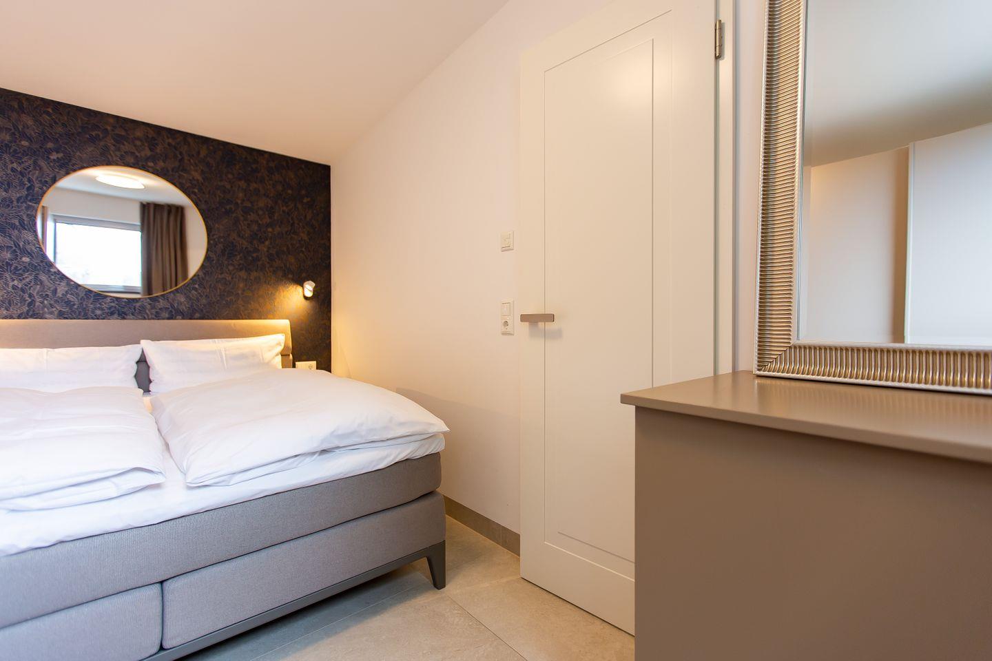 Das separate Schlafzimmer sorgt für Ruhe und Rückzug. Ideal, um nach einem erlebnisreichen Tag am Meer entspannt einzuschlafen. Das angrenzende, moderne Badezimmer mit Tageslicht ist komfortabel ausgestattet und rundet das Wohlfühlambiente ab.