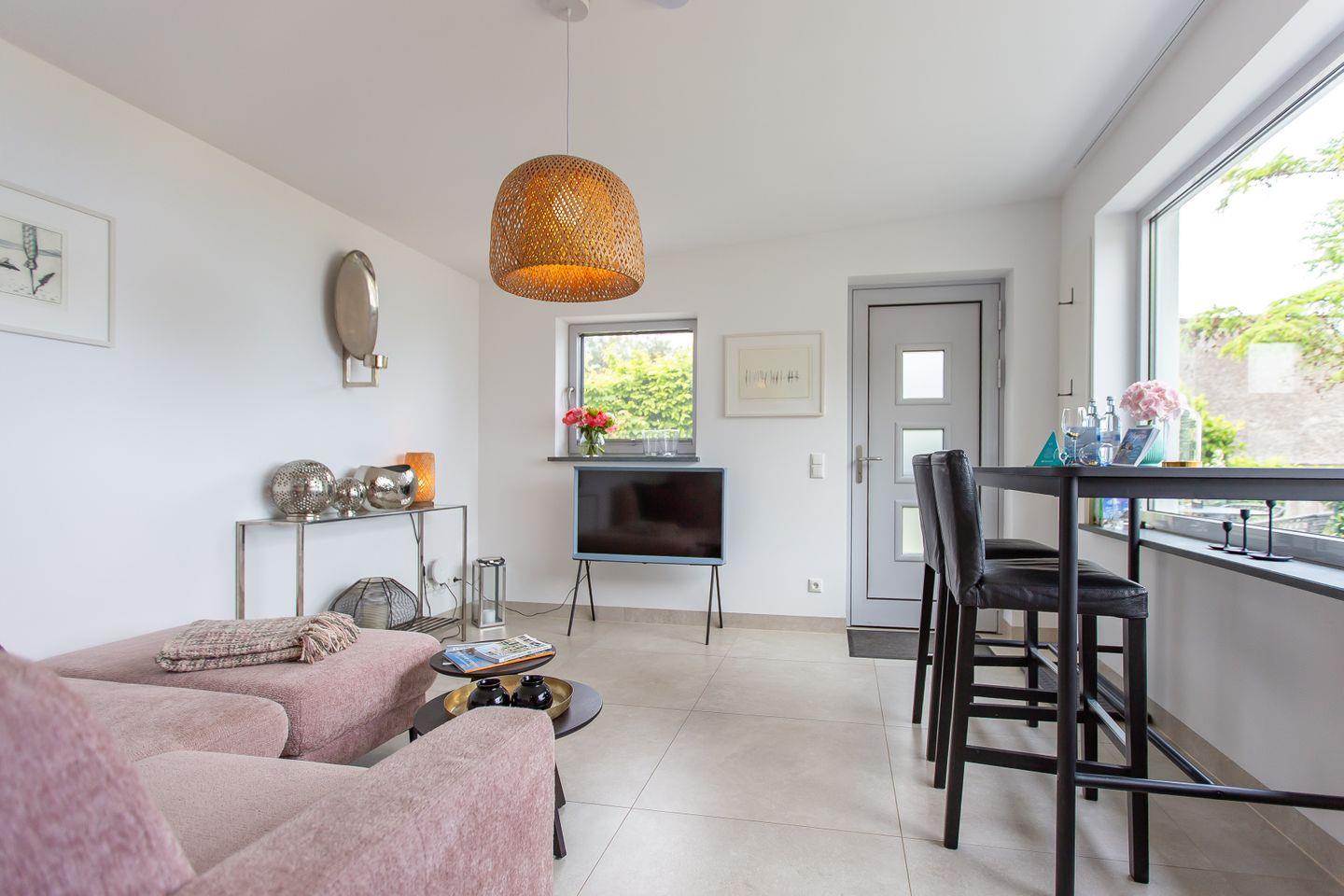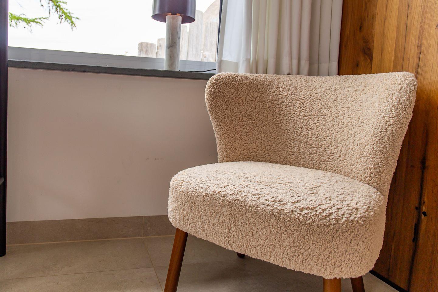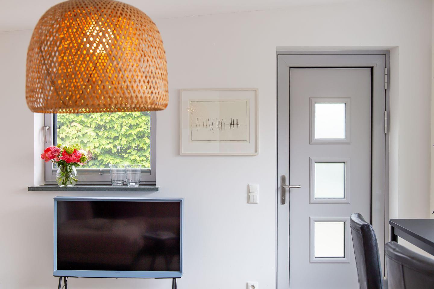 Alle Räume befinden sich im Erdgeschoss und sind ebenerdig erreichbar. Die Zugänge zum Wohnungseingang, Schlafzimmer und Badezimmer sind stufenlos gestaltet. Auch die Dusche ist barrierearm ausgeführt und ermöglicht eine angenehme Nutzung. Damit eignet sich das Ferienhaus besonders gut für Menschen mit Beeinträchtigungen oder alle, die Wert auf komfortables, ebenerdiges Wohnen legen.