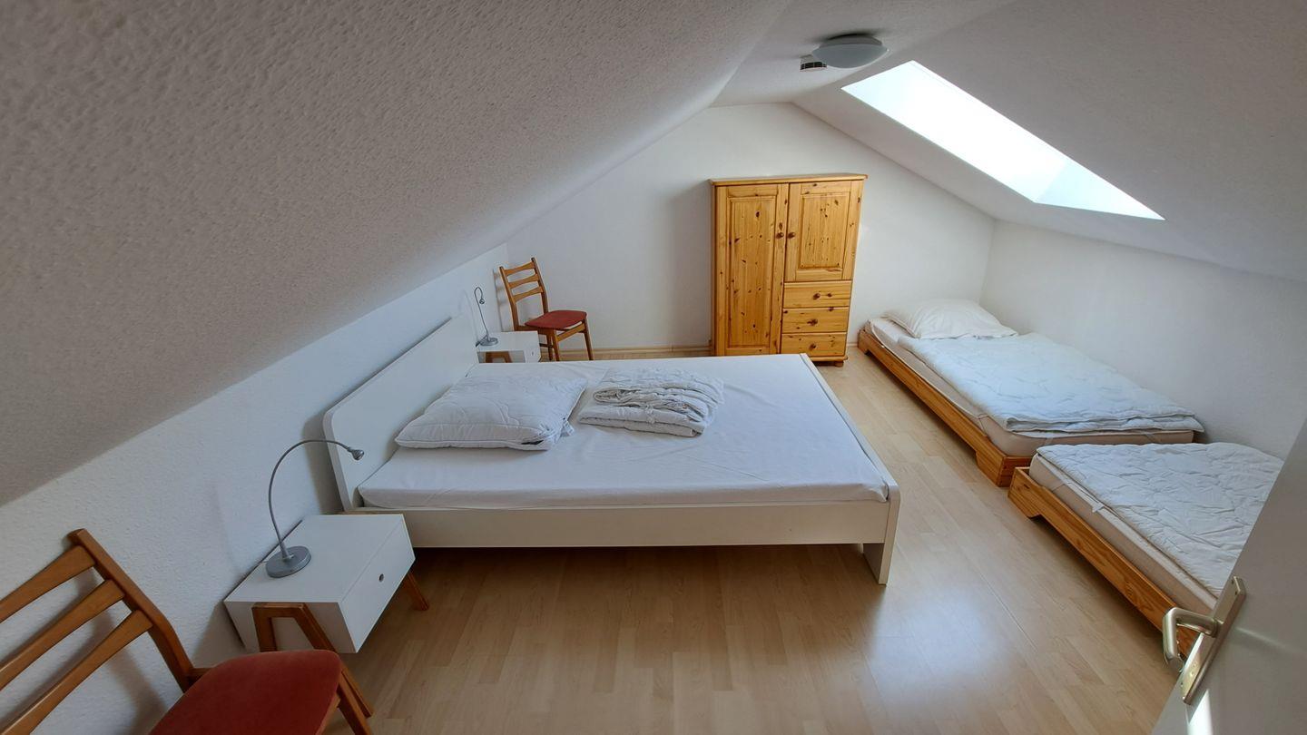 Die Ferienwohnung "Osterholz" ist eine 3-Zimmer-Maisonette-Wohnung mit 75qm Wohnfläche und bietet Platz für maximal 6 Personen. Die Wohnung befindet sich im 2. Obergeschoß des Hauses und verfügt über zwei Balkone. Es gibt ein Schlafzimmer mit Doppelbett und ein weiteres Schlafzimmer mit Doppelbett und zwei Einzelbetten. Das Bad bietet eine Eckbadewanne und eine Dusche. Ein Haartrockner ist vorhanden. Die separate Küche ist komplett ausgestattet mit Backofen, Ceranherd, Mikrowelle, Geschirrspüler, Kühlschrank mit Gefriermöglichkeit und natürlich mit Kaffeeautomat, Toaster, Wasserkocher ect. In der Wohnung gibt es ein kostenfreies WLAN. Zur Wohnung gehört ein reservierter Pkw-Stellplatz (Nr.2-7) und ein Schuppen zum Abstellen für Fahrräder u.a. (Nr. 2-7)