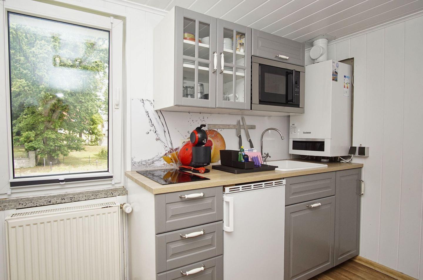 KÜCHE // sep. Küche mit Essbereich, 2-Platten Ceranfeld, Heißluftfritteuse, Kühlschrank mit Gefrierfach, Mikrowelle, Toaster, Wasserkocher, Kaffeemaschine, reichlich Besteck, Geschirr und Küchenutensilien ++