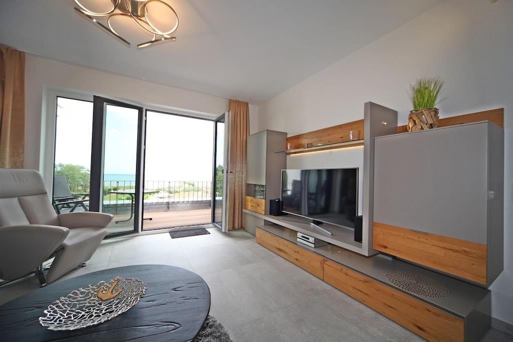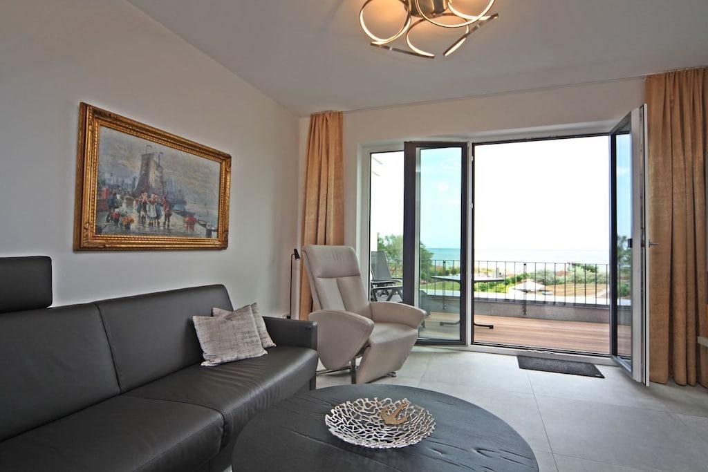 Penthouse-Wohnung mit Meerblick, großer Terrasse und Sauna im Ostseebad Baabe auf Rügen.
