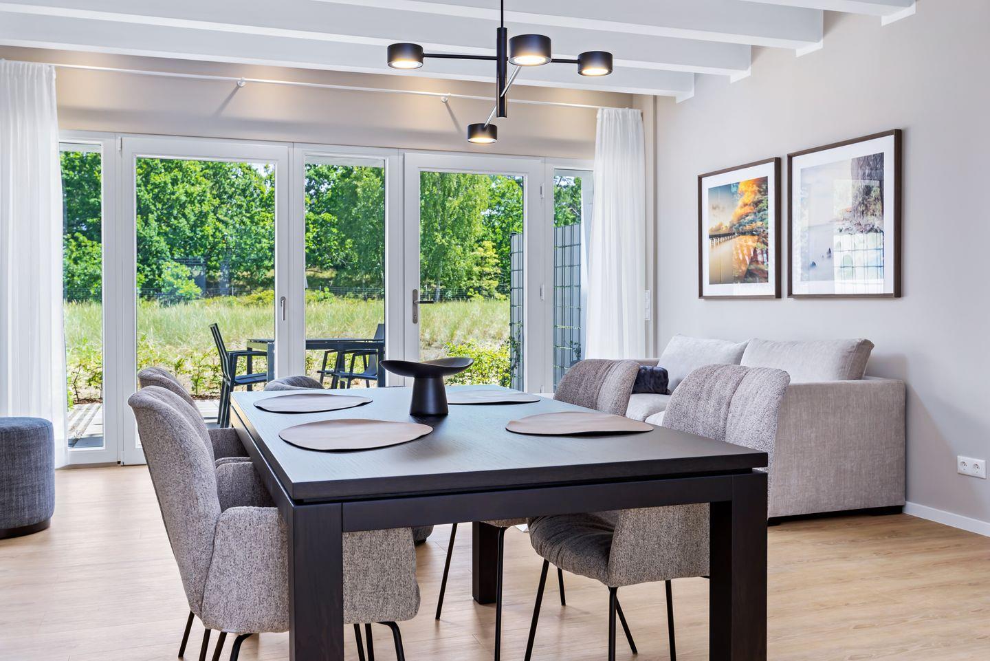 Das geschmackvoll eingerichtete Nichtraucher-Apartment verfügt über Fußbodenheizung, z.T. bodentiefe Fenster, kostenfreies WLAN und eine voll ausgestattete offene Küche mit Geschirrspüler, Kühlschrank mit Gefrierfach, Filterkaffeemaschine, Mixer, Toaster, Wasserkocher, Mikrowelle mit Backofenfunktion und 4-Felder Induktionsherd von BORA sowie über einen behaglichen und großzügigen Wohn-Essbereich. Im Wohnbereich befindet sich ein großer SMART-TV (55 Zoll).