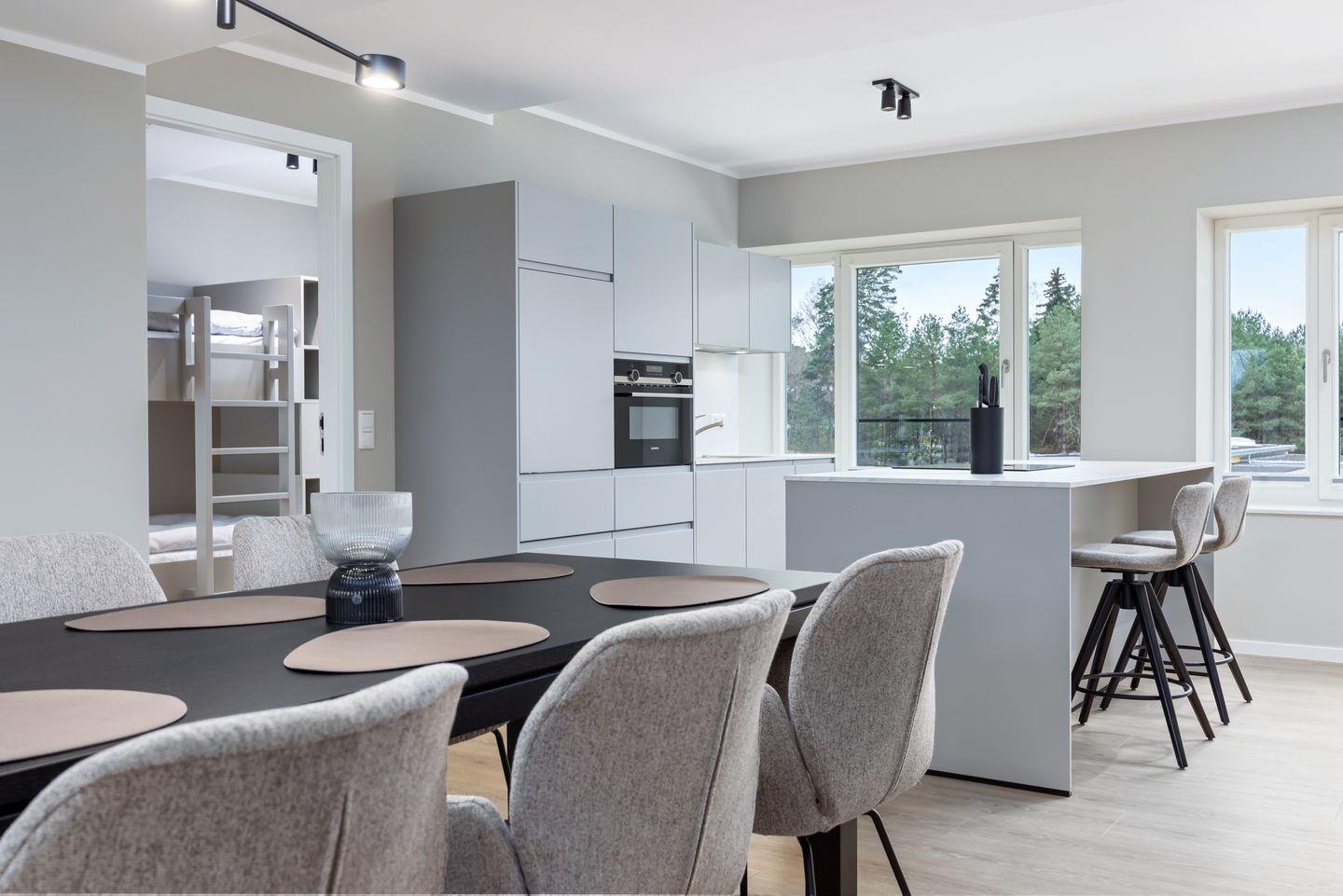 Das geschmackvoll eingerichtete Nichtraucher-Apartment verfügt über Fußbodenheizung, z.T. bodentiefe Fenster, kostenfreies WLAN und eine voll ausgestattete offene Küche mit Geschirrspüler, Kühlschrank mit Gefrierfach, Filterkaffeemaschine, Mixer, Toaster, Wasserkocher, Mikrowelle mit Backofenfunktion und 4-Felder Induktionsherd von BORA sowie über einen behaglichen und großzügigen Wohn-Essbereich. Im Wohnbereich befindet sich ein großer SMART-TV (55 Zoll).