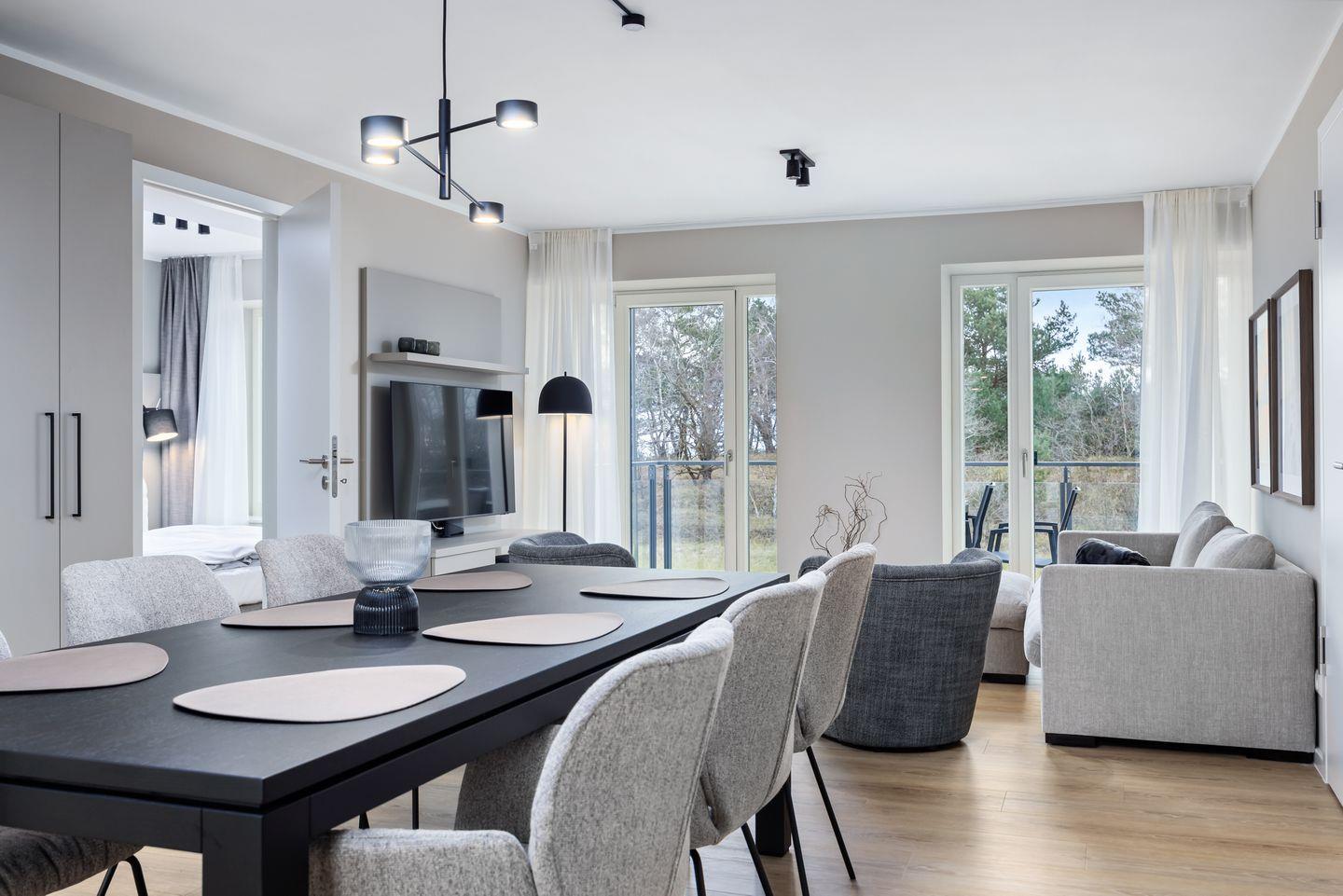 Familienfreundliches Ferienapartment in Binz-Prora mit Balkon, Meerblick und zwei Bädern, nur 130 m vom Strand entfernt.