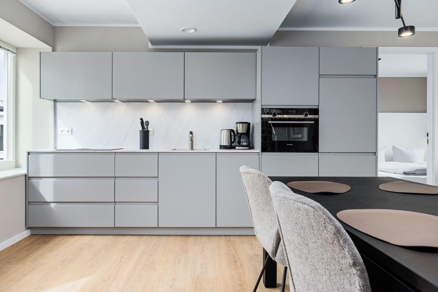 Das geschmackvoll eingerichtete Nichtraucher-Apartment verfügt über Fußbodenheizung, z.T. bodentiefe Fenster, kostenfreies WLAN und eine voll ausgestattete offene Küche mit Geschirrspüler, Kühlschrank mit Gefrierfach, Filterkaffeemaschine, Mixer, Toaster, Wasserkocher, Mikrowelle mit Backofenfunktion und 4-Felder Induktionsherd von BORA sowie über einen behaglichen und großzügigen Wohn-Essbereich. Im Wohnbereich befindet sich ein großer SMART-TV (55 Zoll).