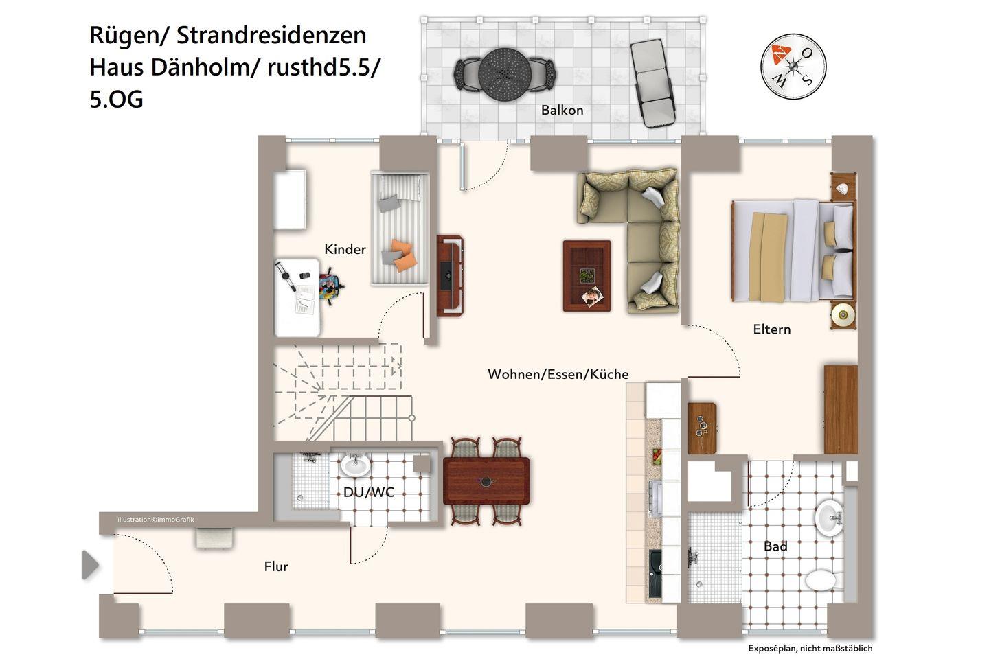 Penthaus mit Dachterrasse, Meerblick und Strandlage in Prora, ideal für entspannte Tage am Sandstrand.