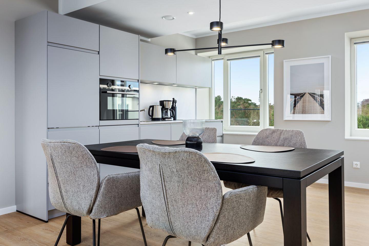 Das geschmackvoll eingerichtete Nichtraucher-Apartment verfügt über Fußbodenheizung, z.T. bodentiefe Fenster, kostenfreies WLAN und eine voll ausgestattete offene Küche mit Geschirrspüler, Kühlschrank mit Gefrierfach, Filterkaffeemaschine, Mixer, Toaster, Wasserkocher, Mikrowelle mit Backofenfunktion und 4-Felder Induktionsherd von BORA sowie über einen behaglichen und großzügigen Wohn-Essbereich. Im Wohnbereich befindet sich ein großer SMART-TV (55 Zoll).