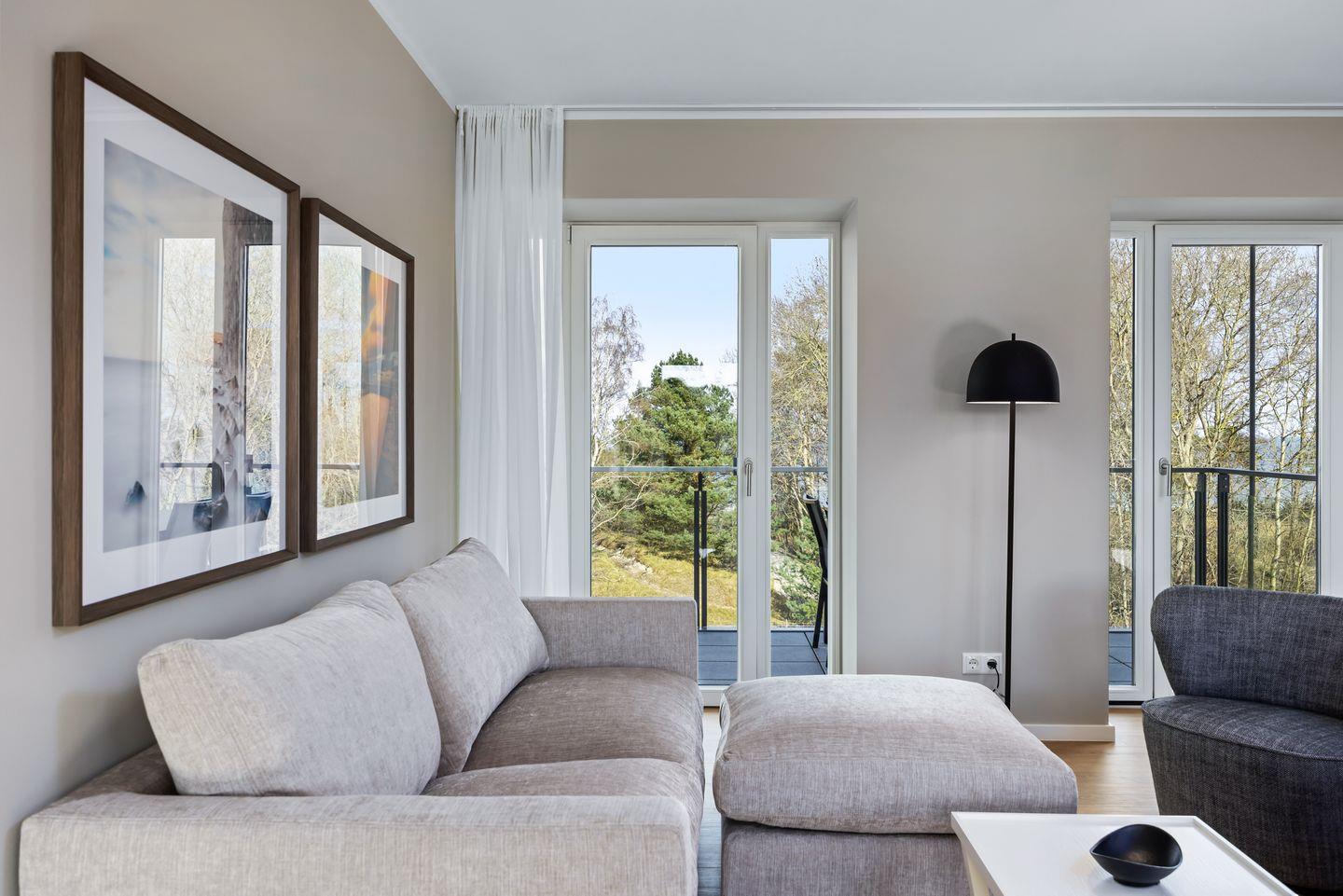 Das geschmackvoll eingerichtete Nichtraucher-Apartment verfügt über Fußbodenheizung, z.T. bodentiefe Fenster, kostenfreies WLAN und eine voll ausgestattete offene Küche mit Geschirrspüler, Kühlschrank mit Gefrierfach, Filterkaffeemaschine, Mixer, Toaster, Wasserkocher, Mikrowelle mit Backofenfunktion und 4-Felder Induktionsherd von BORA sowie über einen behaglichen und großzügigen Wohn-Essbereich. Im Wohnbereich befindet sich ein großer SMART-TV (55 Zoll).