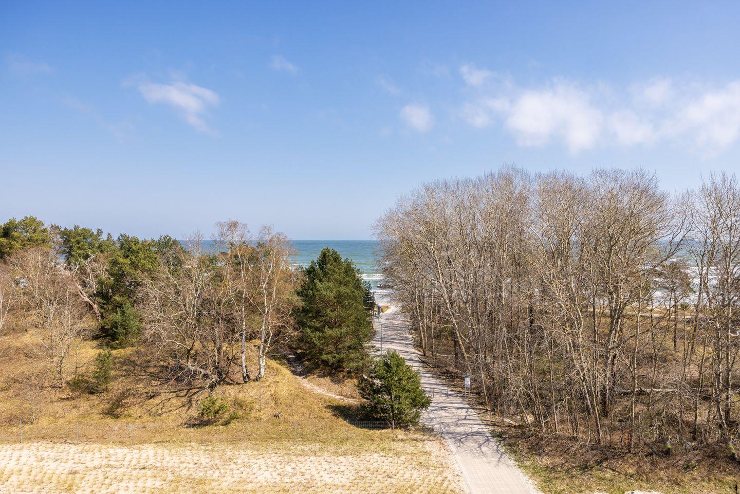 Das lichtdurchflutete Apartment befindet sich in nordöstlicher Lage im fünften und somit dem obersten Geschoss des Hauses Vilm. Die Ostsee liegt euch hier zu Füßen - in nur 130 Metern erreicht ihr den feinsandigen, kilometerlangen Südstrand. In der Umgebung warten zahlreiche Ausflugsmöglichkeiten auf euren Besuch: Das Dokumentationszentrum Prora, das Prora-Zentrum, das Oldtimer-Museum Rügen, das NVA-Museum Rügen, die Galileo Wissenswelt Rügen, der Kletterwald Binz-Prora und das Naturerbe Zentrum Rügen mit dem Baumwipfel-Pfad sowie das beliebte Karls Erlebnis-Dorf in Zirkow. Fußläufig befinden sich zwei Bäckereien, einige Bistros sowie ein Restaurant, kleine Mode- und Souvenirgeschäfte als auch ein Fahrradverleih. Eine Segelschule befindet sich in ca. 3 km Entfernung.