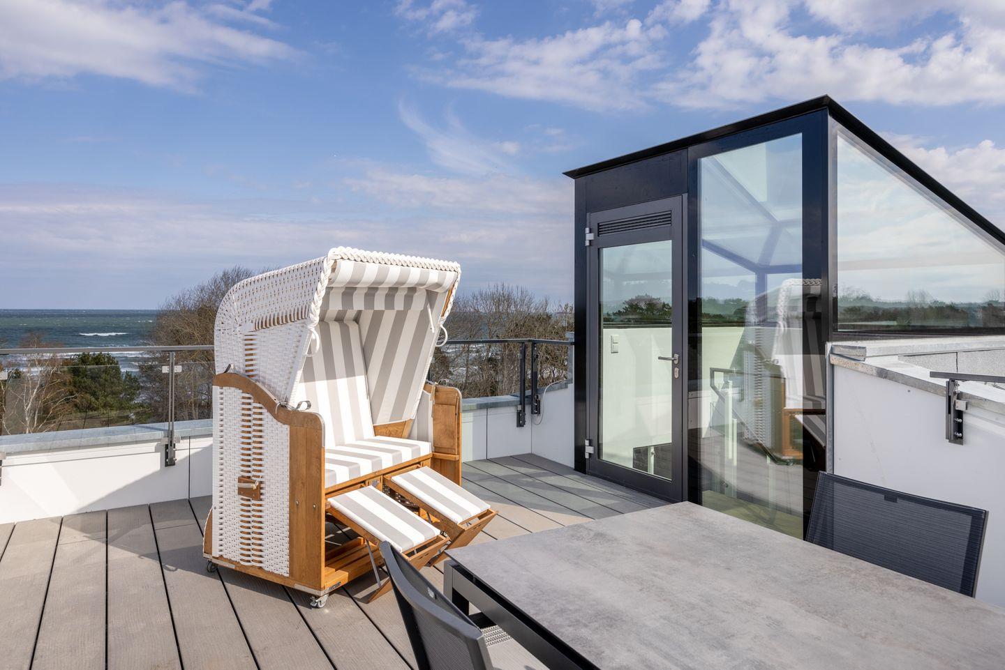 Luxuriöses Penthaus mit Dachterrasse, Strandkorb und Ostseeblick nahe dem Strand von Binz.