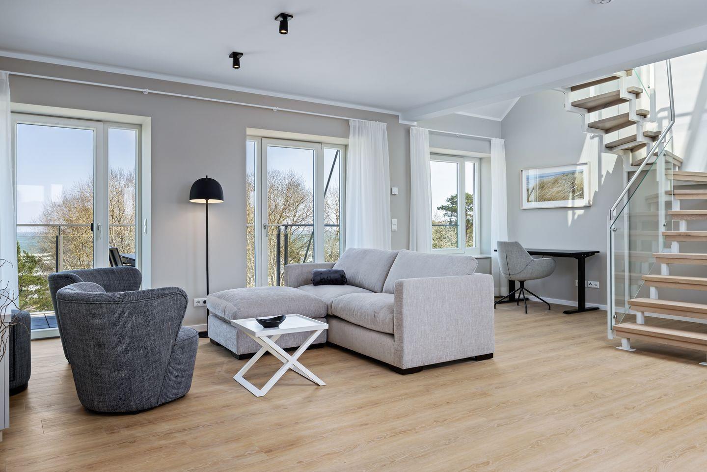 Das 110 m² große 4-Zimmer Penthaus-Apartment mit Meerblick ist für bis zu 5 Personen geeignet. Das moderne Apartment in erster Reihe zum Strand verfügt über zwei Badezimmer, einen Balkon sowie über eine tolle Dachterrasse mit Strandkorb und wunderschönem Blick auf die Ostsee! Nur wenige Schritte und ihr befindet euch am kilometerlangen, feinsandigen Inselstrand.