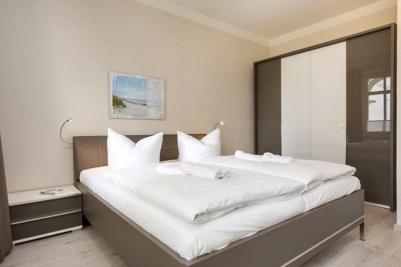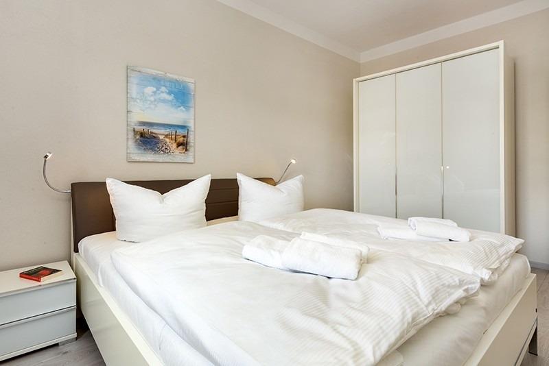 2 hochwertige Schlafzimmer jeweils mit Doppelbett (180x200cm), 2 Nachtschränke, 1 Stuhl, Kleiderschrank und TV