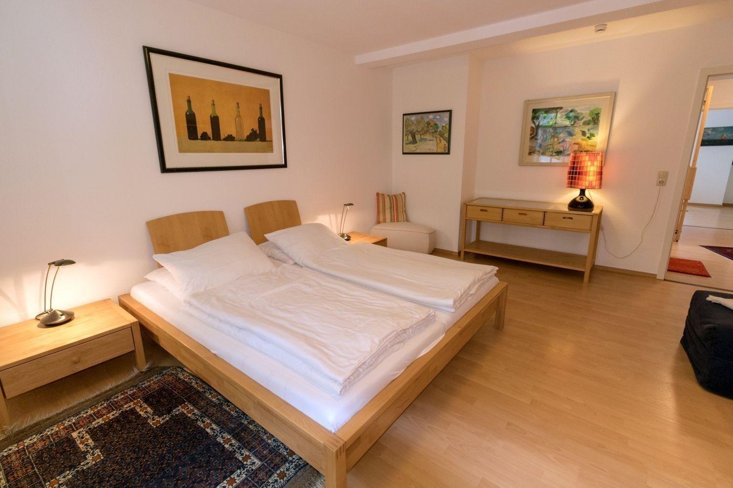 Das separate Schlafzimmer ist mit einem gemütlichen Doppelbett und einem weiteren TV-Gerät eingerichtet, von hier aus gelangen Sie zu Ihrem zweiten Balkon. Weitere Schlafmöglichkeiten für 2 Personen bietet die gemütliche Schlafcouch im Wohnbereich.