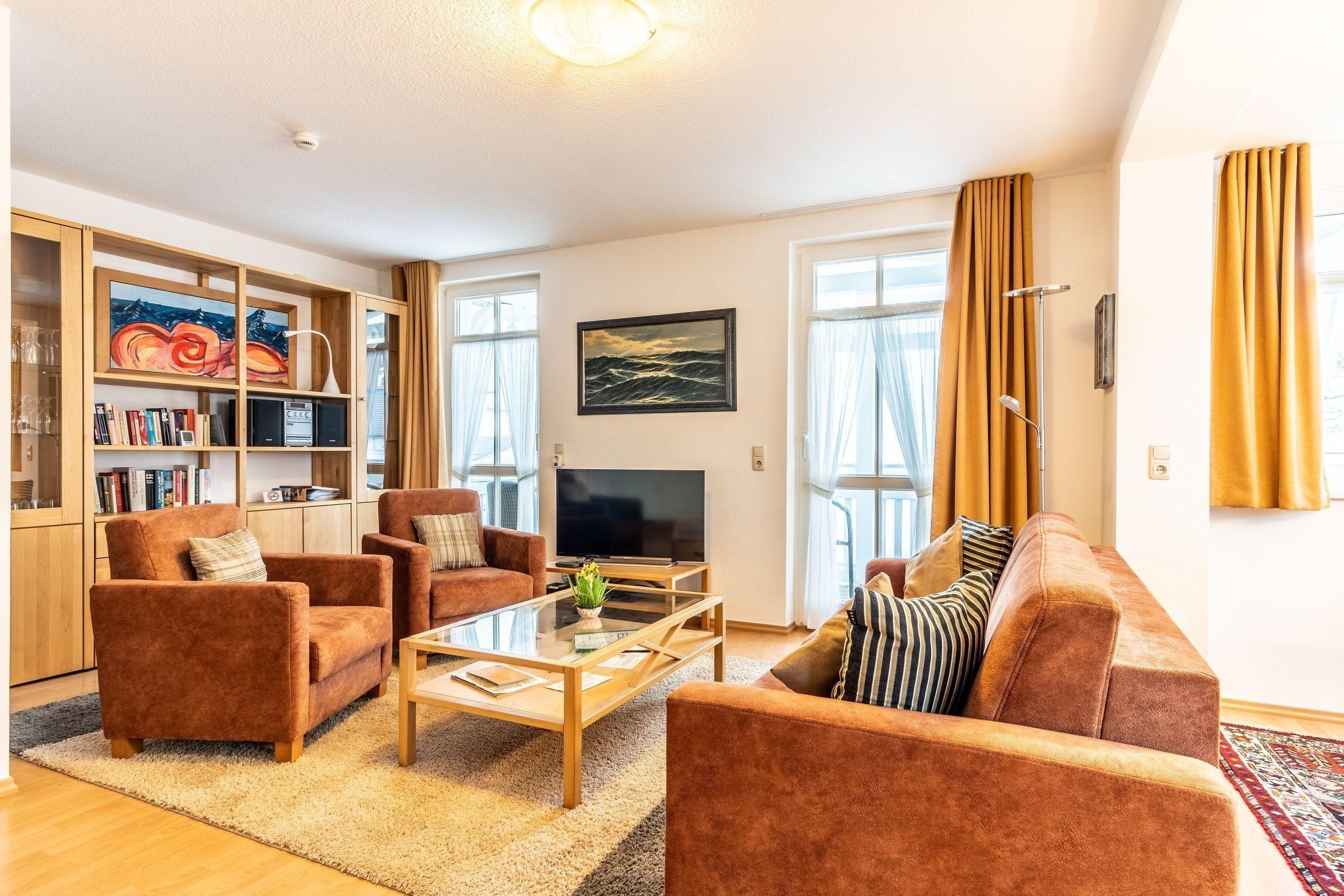 Das gemütliche Apartement bietet Platz für bis zu 4 Personen. Es erwartet Sie ein heller und freundlicher Wohnbereich mit einer komfortablen Sitzgarnitur, einem TV-Gerät, einem Esstisch und einer offenen Küche. Die Küche ist vollständig ausgestattet und bietet neben den gängigen Geräten auch einen Geschirrspüler.
