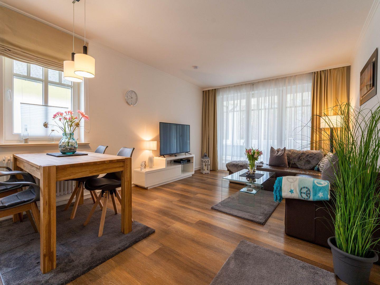 Geräumige Ferienwohnung mit Balkon, voll ausgestatteter Küche und Schlafmöglichkeiten für Kinder im Ostseebad Binz.