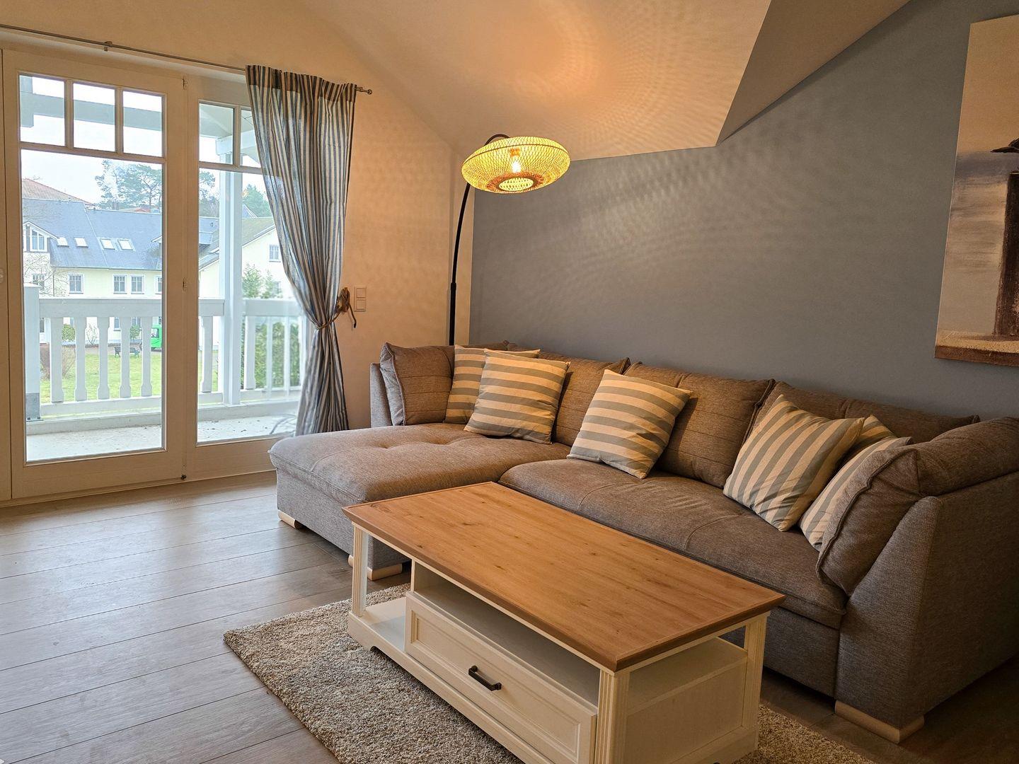 Moderne Ferienwohnung mit Balkon, separatem Schlafzimmer und kompletter Küchenausstattung im Ostseebad Binz.