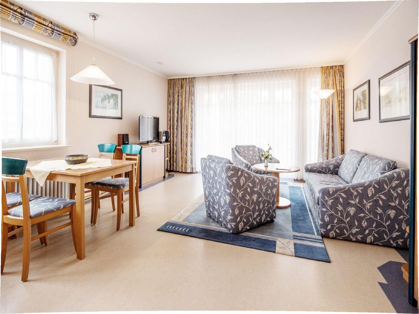Gemütliche Ferienwohnung mit Terrasse, moderner Küche und LCD-TV im Ostseebad Binz, nur 400 m vom Strand entfernt.