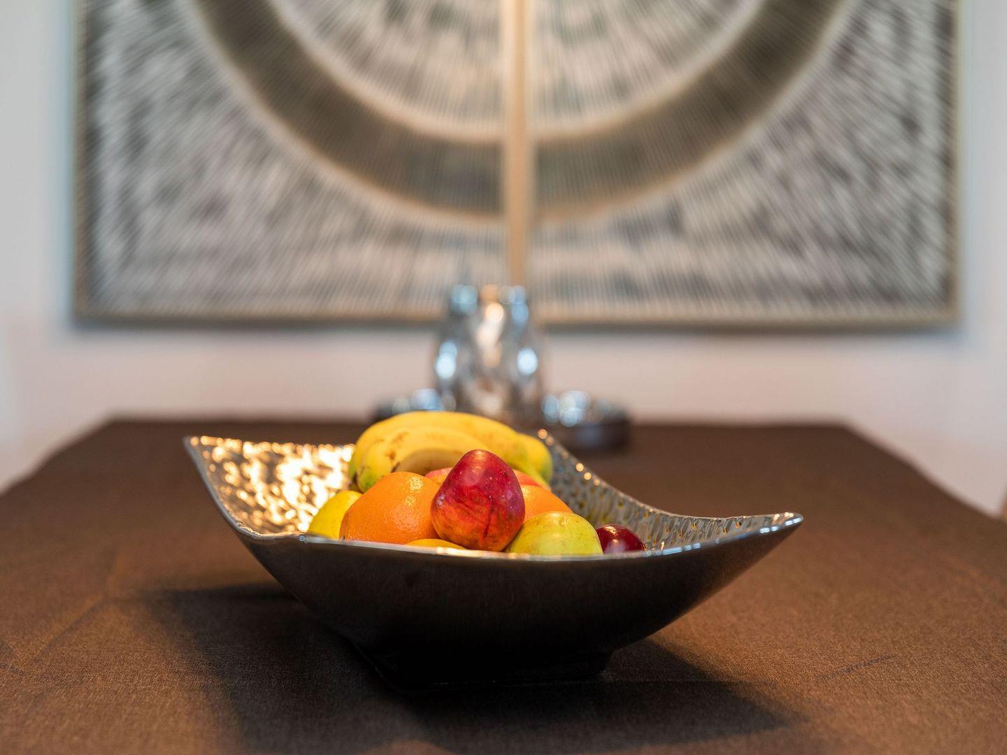 Diese hochwertig eingerichtete Ferienwohnung mit privatem Balkon mit Seeblick besteht aus einem großen Wohnraum mit Küche und Essbereich sowie drei separat liegenden Schlafzimmern. Die Küche ist eingerichtet und überzeugt mit einem Kochfeld, einem Backofen, einem Geschirrspüler, einem Wasserkocher, einer Kaffeemaschine und einem Toaster. Im Wohnzimmer, wie auch in den beiden Schlafzimmern mit Doppelbett stehen LCD-TV, zusätzlich gibt es hier eine Soundbar. Das separate Bürozimmer bietet eine weitere Schlafmöglichkeit für eine Person. Eines der Badezimmer überzeugt mit einer geräumigen Dusche, das andere mit einer Badewanne. Das gewisse Extra bietet die private Sauna.