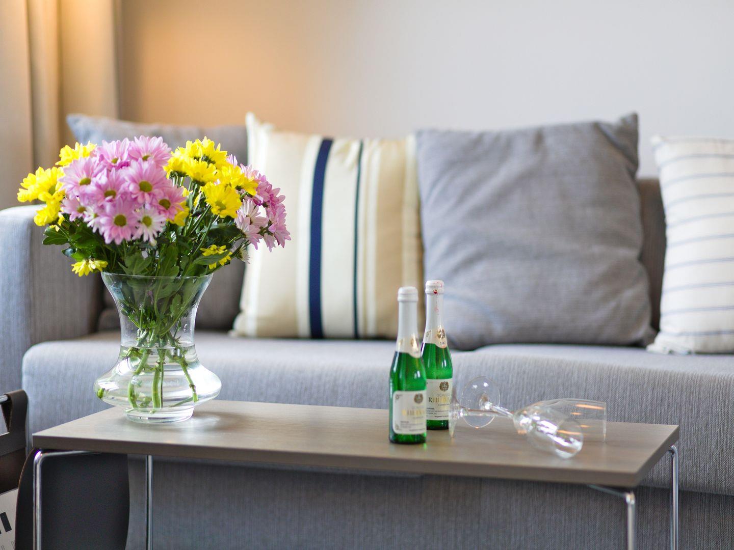 Diese hochwertig eingerichtete Ferienwohnung mit privatem Balkon mit Seeblick besteht aus einem großen Wohnraum mit Küche und Essbereich sowie drei separat liegenden Schlafzimmern. Die Küche ist eingerichtet und überzeugt mit einem Kochfeld, einem Backofen, einem Geschirrspüler, einem Wasserkocher, einer Nespresso - Kaffeemaschine und einem Toaster. Im Wohnzimmer befindet sich ein Smart-TV und in einem der beiden Schlafzimmer mit Doppelbett steht ein LCD-TV. Der dritte Schlafraum ist mit einem Doppelstockbett ausgestattet. Eines der Badezimmer überzeugt mit einer geräumigen Dusche, das andere mit einer Badewanne. Das gewisse Extra bietet die private Sauna. Ebenfalls gehören zu dieser Wohnung 2 Parkplätze.