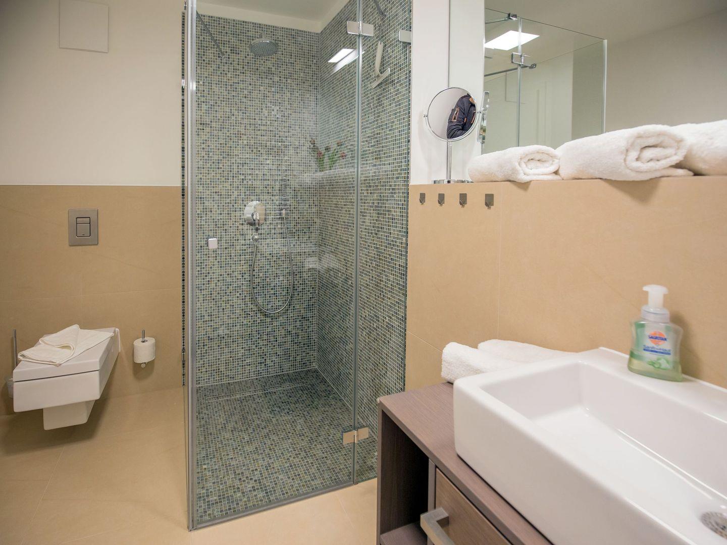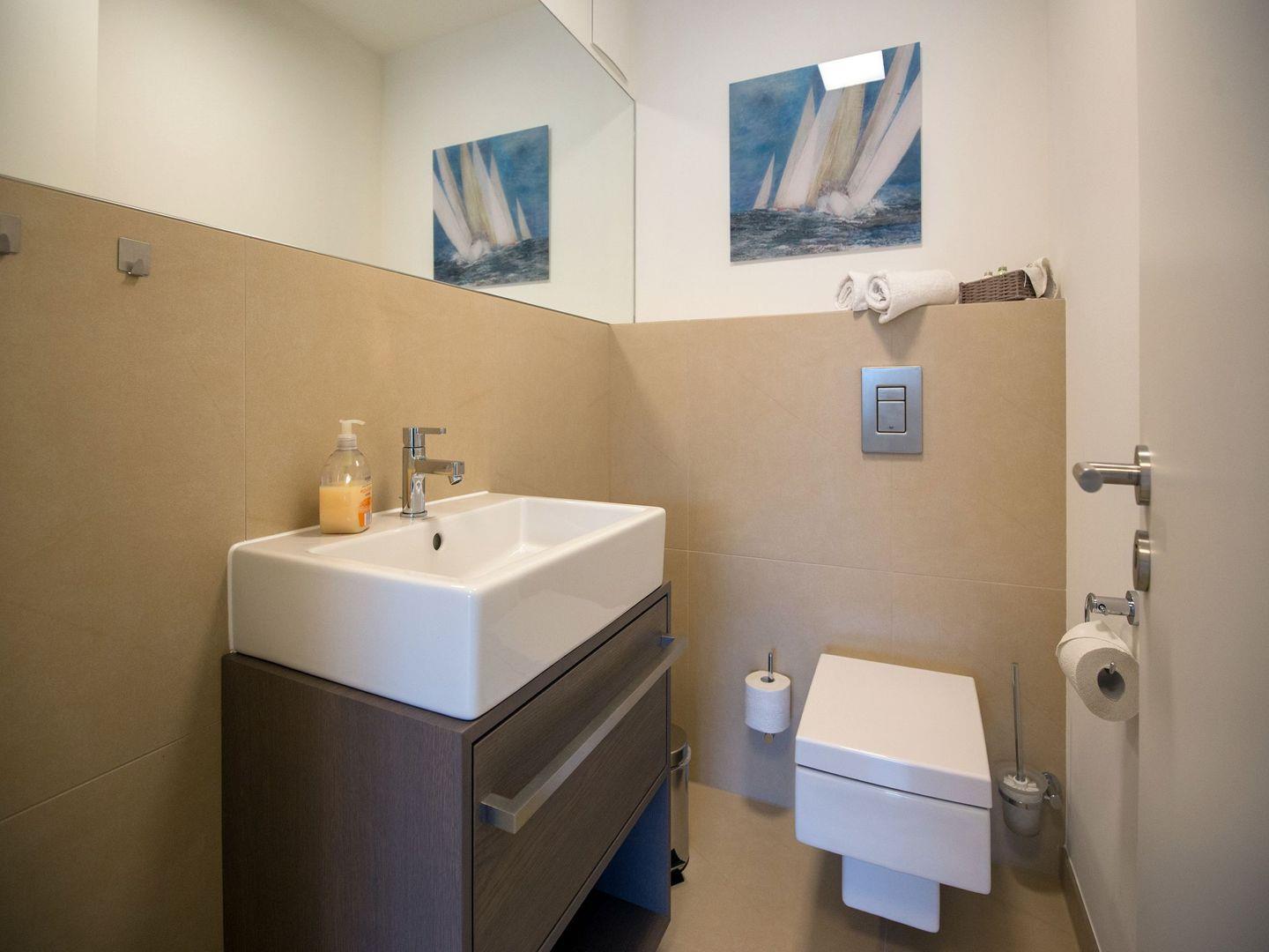 Diese hochwertig eingerichtete Ferienwohnung mit privater Loggia mit Seeblick besteht aus einem großen Wohnraum mit Küche und Essbereich sowie zwei separaten Schlafzimmern. Die Küchenzeile ist eingerichtet und überzeugt mit einem Kochfeld, einem Backofen, einem Geschirrspüler, einer Mikrowelle, einem Wasserkocher, einer Kaffeemaschine und einem Toaster. Im Wohnzimmer, wie auch in beiden Schlafzimmern stehen LCD-TV, zusätzlich findet sich ein Blu-Ray-Player. Beide Schlafzimmer liegen separat und sind jeweils mit einem Doppelbett ausgestattet. Das Badezimmer überzeugt mit einer geräumigen Dusche, einem Waschbecken, einem WC und einem großen Spiegel. Ein Gäste-WC gehört ebenfalls zum Interieur. In der Zeit von Mai bis September ist ein eigener Strandkorb am Strand inklusive.