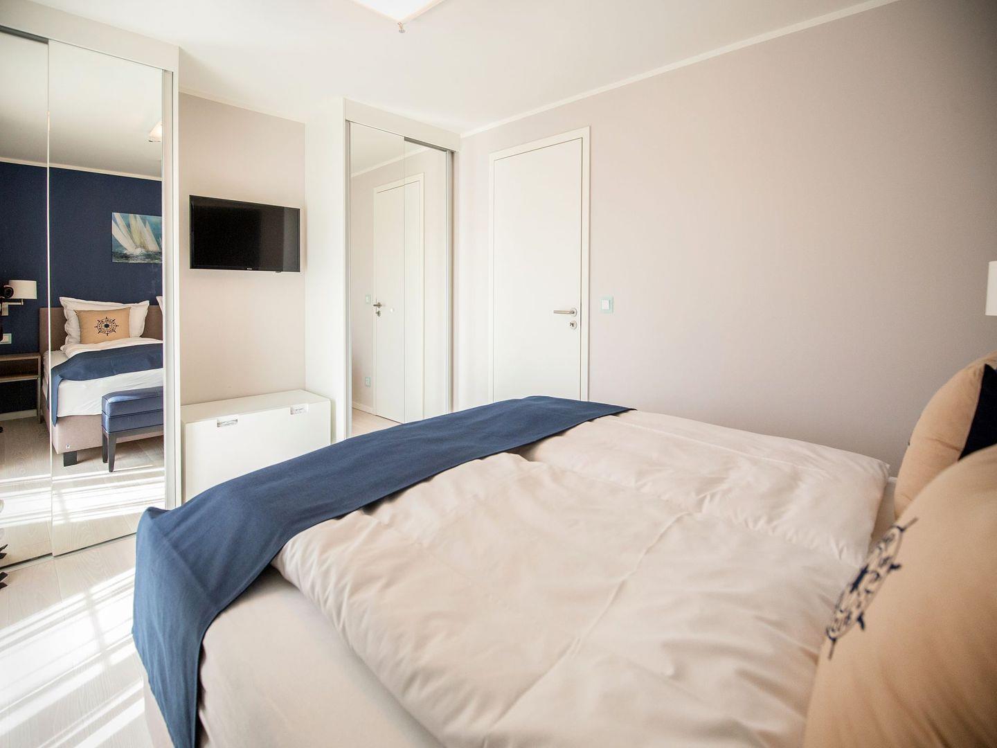 Diese hochwertig eingerichtete Ferienwohnung zur Sonnenseite besteht aus einem großen Wohnraum mit Küche und Essbereich sowie einem separaten Schlafzimmer. Die Küchenzeile ist eingerichtet und überzeugt mit einem Kochfeld, einem Backofen, einem Geschirrspüler, einem Wasserkocher, einer Kaffeemaschine und einem Toaster. Im Wohnzimmer, wie auch im Schlafzimmer stehen LCD-TV. Das Schlafzimmer liegt separat und ist mit einem Doppelbett ausgestattet. Das Badezimmer überzeugt mit einer geräumigen Dusche, einem Waschbecken, einem WC und einem großen Spiegel. Ebenfalls steht Ihnen ein wohnungseigener Waschtrockner zur Verfügung. In der Zeit von Mai bis September ist ein eigener Strandkorb am Strand inklusive. Haustiere sind in dieser Wohnung herzlich willkommen.