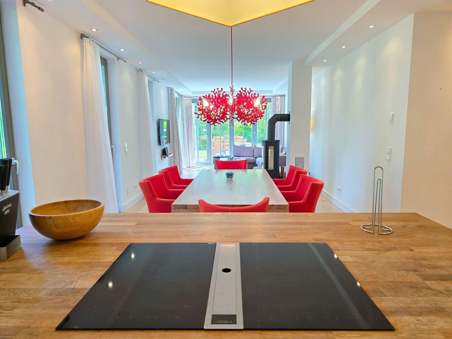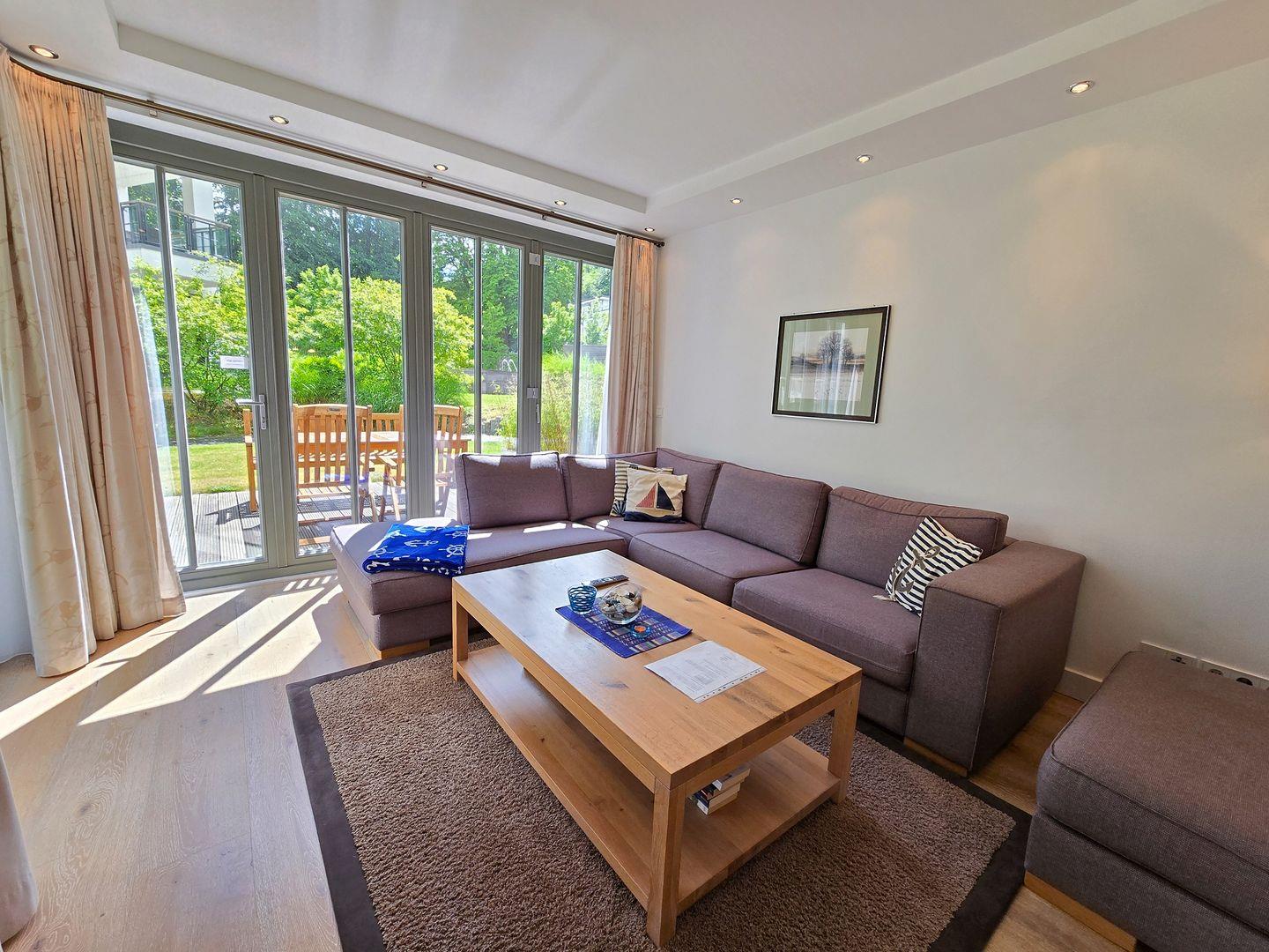 Diese komfortable Ferienwohnung bietet alles was das Herz begehrt und lädt Sie zu einem Frühstück auf Ihrer privaten Terrasse mit Strandkorb ein. Der großzügige Wohnraum verbindet das Wohnzimmer mit LCD-TV, Stereo-Anlage und Kaminofen mit dem Essbereich und einer voll ausgestatteten Küche. Hier finden sich ein Geschirrspüler, ein Backofen mit Cerankochfeld, eine Mikrowelle, ein Toaster, ein Wasserkocher und eine Kaffeemaschine. Beide Schlafzimmer verfügen über gemütliche Doppelbetten, einen LCD-Fernseher sowie ein eigenes Badezimmer. Zusätzlich gibt es ein Gäste-WC und eine Waschmaschine sowie einen Trockner im Keller. Die ganze Wohnung hat Fußbodenheizung und ein Tiefgaragenstellplatz ist inklusive.
